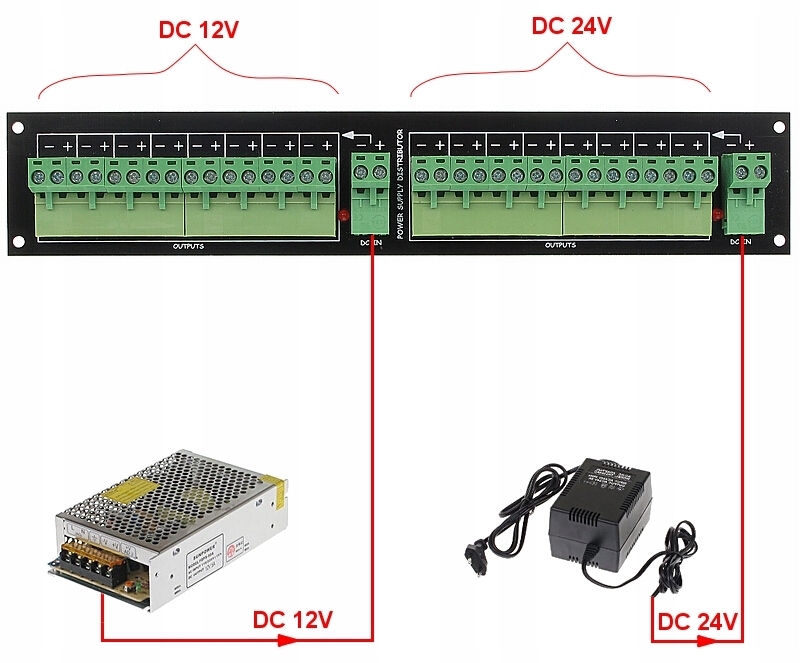- Количество входов питания: 2 (по одному на каждую 8-выходную линейку)