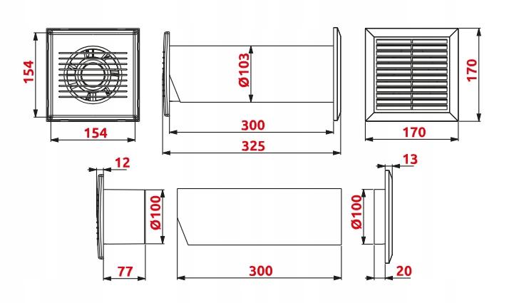 - участок вентиляционного канала (Ø100 мм, длина 300 мм)