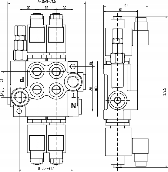 Входы/ выходы: h1> p1/ p2 - подача масла h2> t1/ t2 - возврат масла h2> a1 -a2/ b1 -b2 - выходя к цилиндрам h2> n давление)