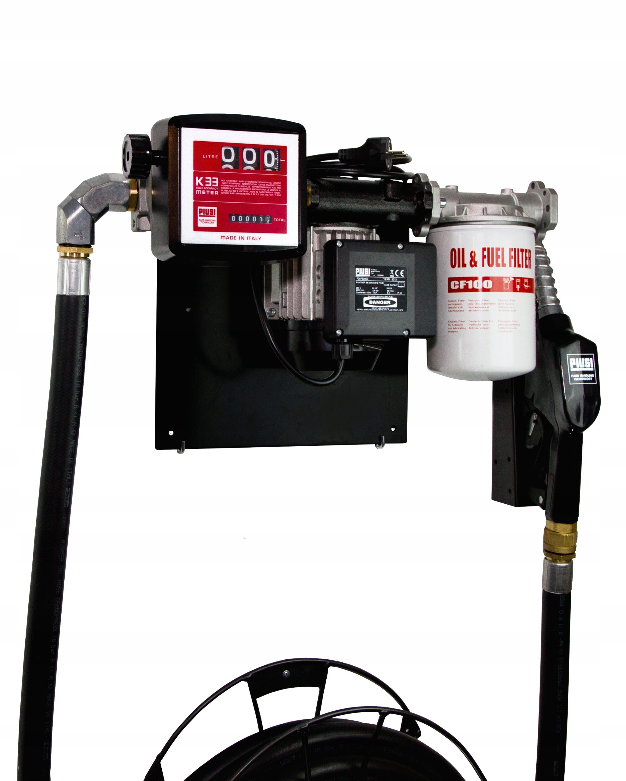 - ПИСТОЛЕТ с прочными маслостойкими уплотнениями, поворотным соединением с шланг, замок для более длительной заправки и ручка для подвешивания на баке.
