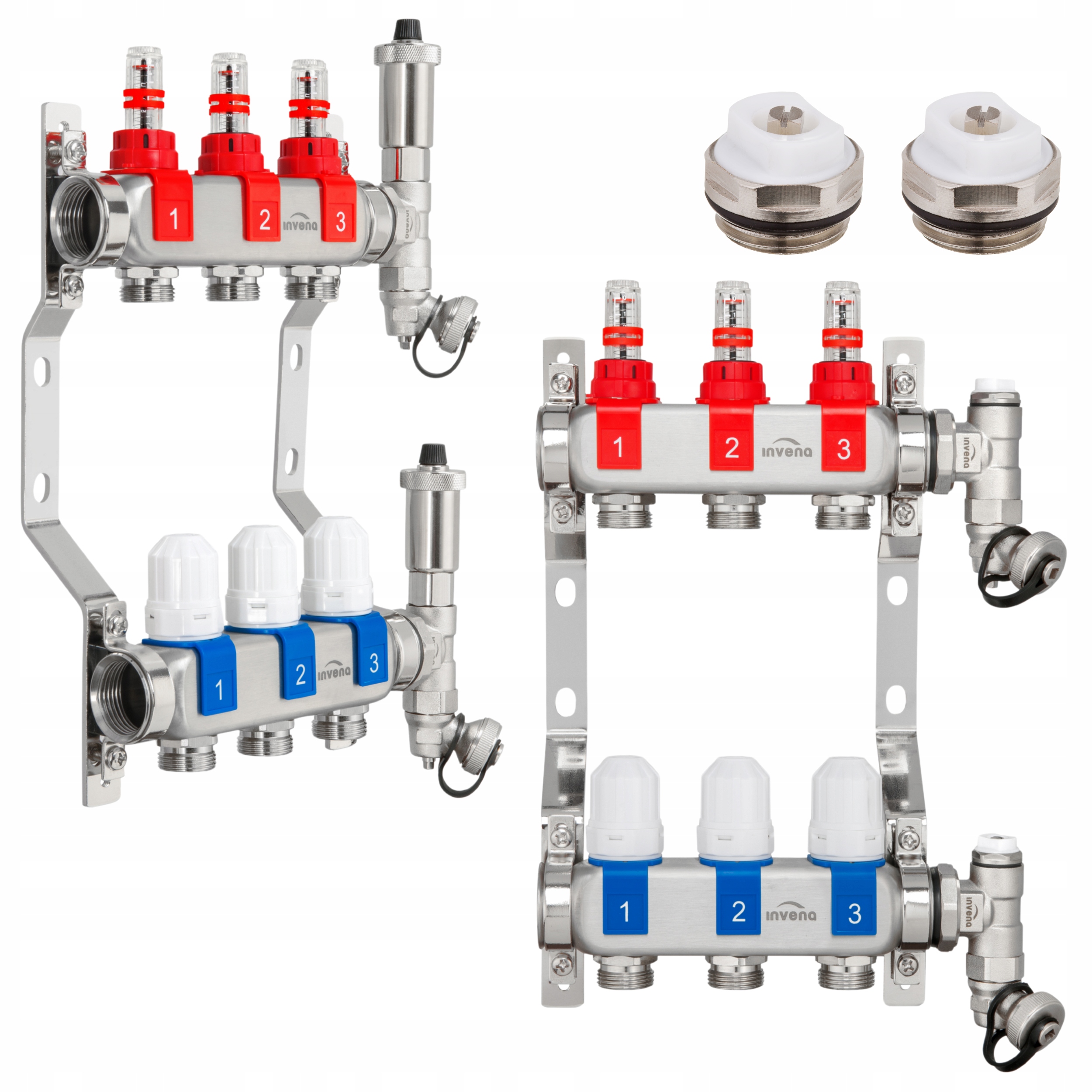 РОЗПОДІЛЬНИК ПІДЛОГИ ТЕПЛОЇ ПІДЛОГИ 3-Х КОНТУРНИЙ СТАЛЕВИЙ СЕКЦІЙ INOX