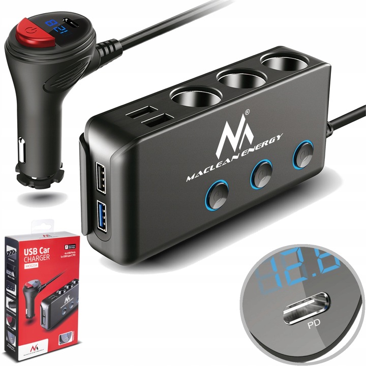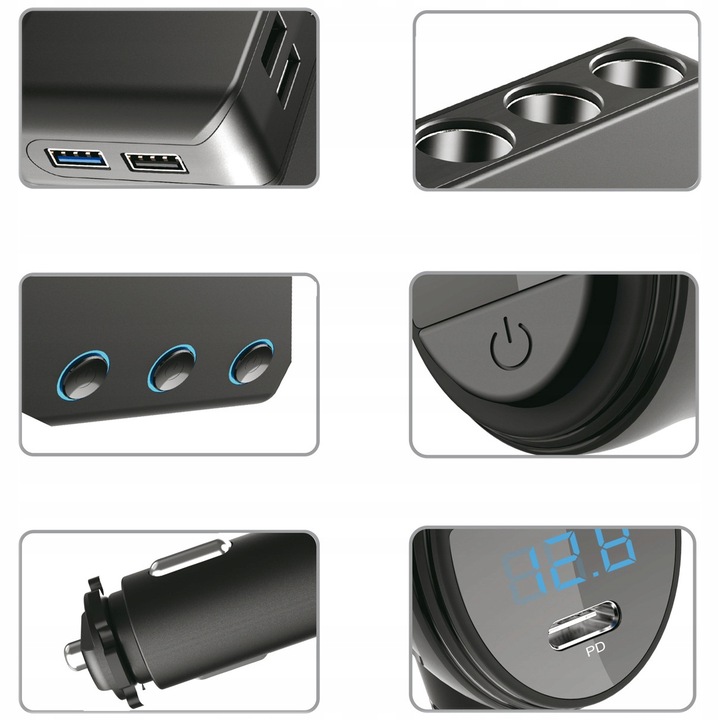 Разветвитель для прикуривателя 12–24 В, 4xUSB PD QC