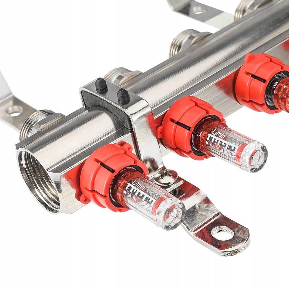 Установлен на силовой балке. Расходомер изготовлен из пластика и латунного корпуса. Ротаметр имеет соответствующую шкалу, позволяющую считывать фактический расход теплоносителя.