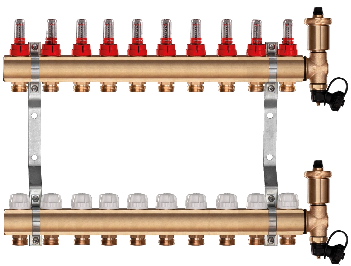 Напольный распределитель из латуни с вентиляционным комплектом на 10 контуров