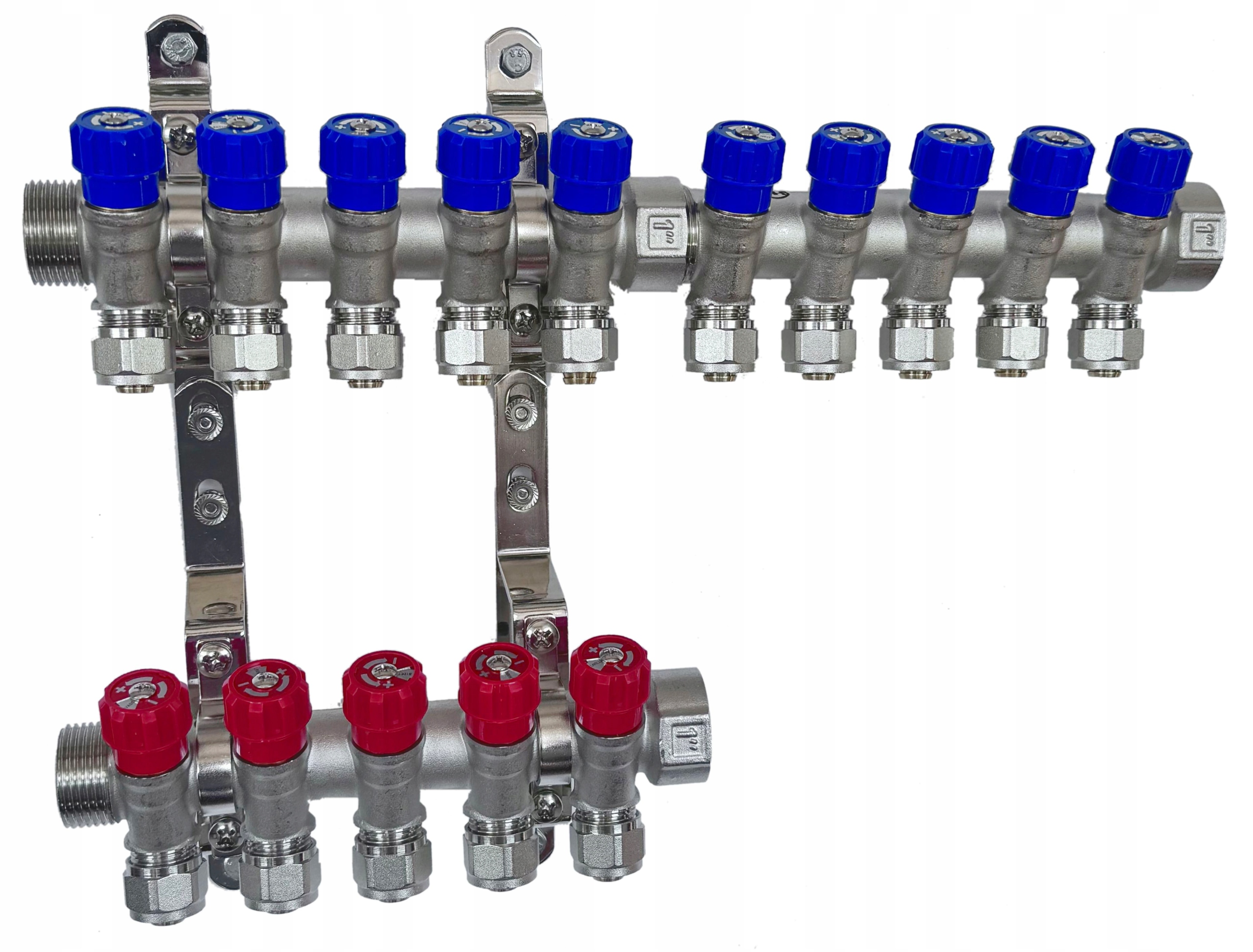 РОЗПОДІЛЬНИК X-HOME PEX 1” x 16 мм 10 КОНТУРІВ ХОЛОДНОЇ ВОДИ 5 ГАРЯЧИХ КОНТУРІВ