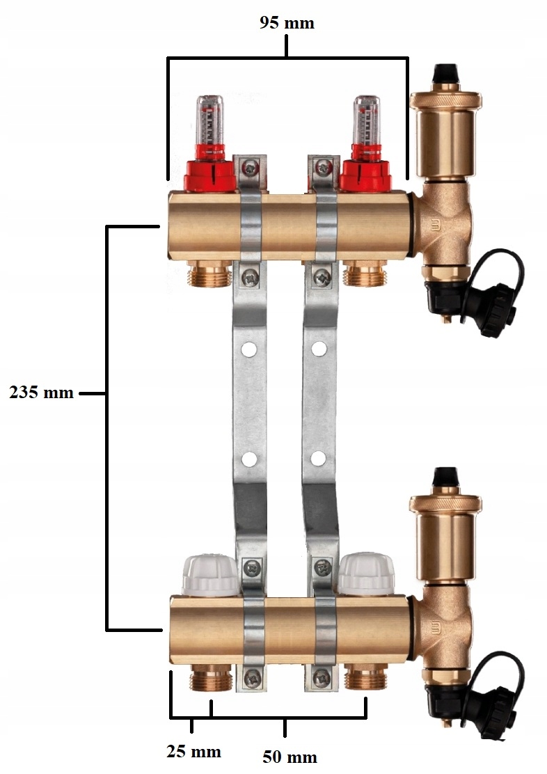 Местный напольный коллектор с вентиляционным набором для 2 цепи Латунь (количество так же, как и количество схем x2)