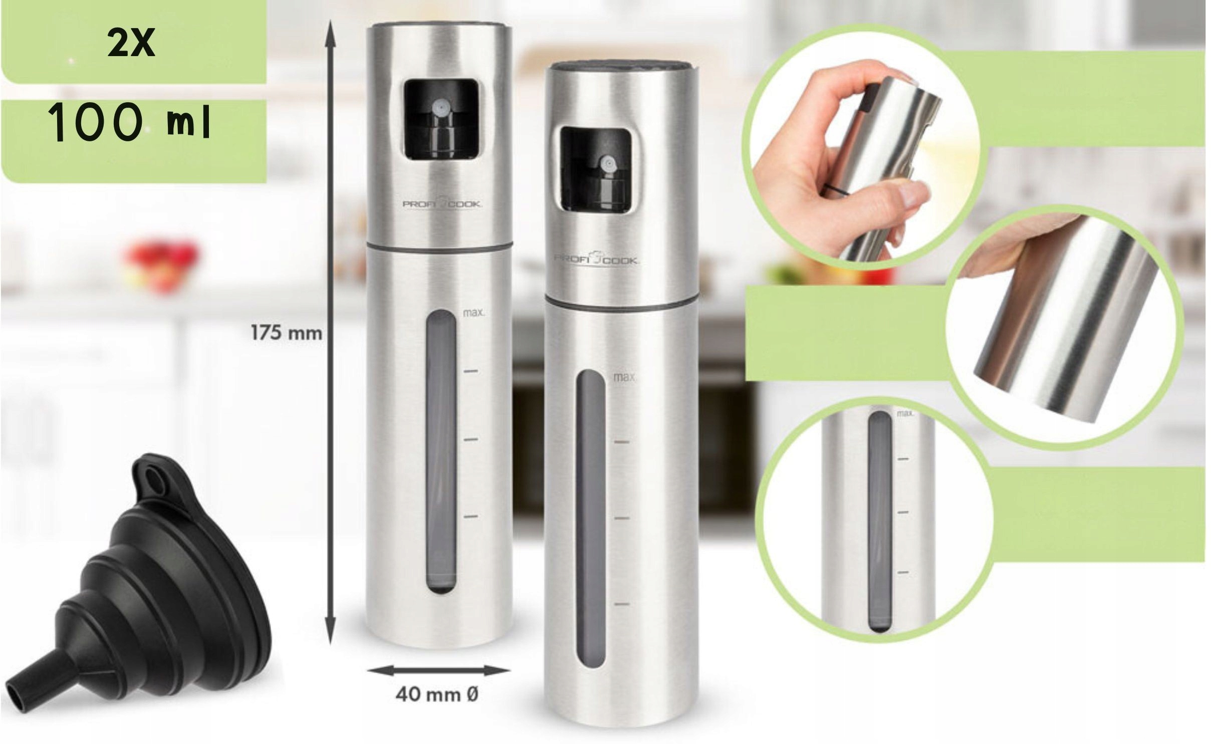 Важнейшие характеристики Набора для распыления кухонного масла ProfiCook PC-EOS: