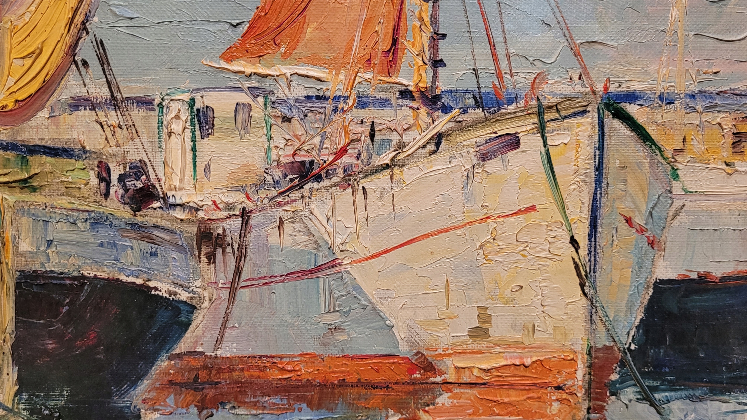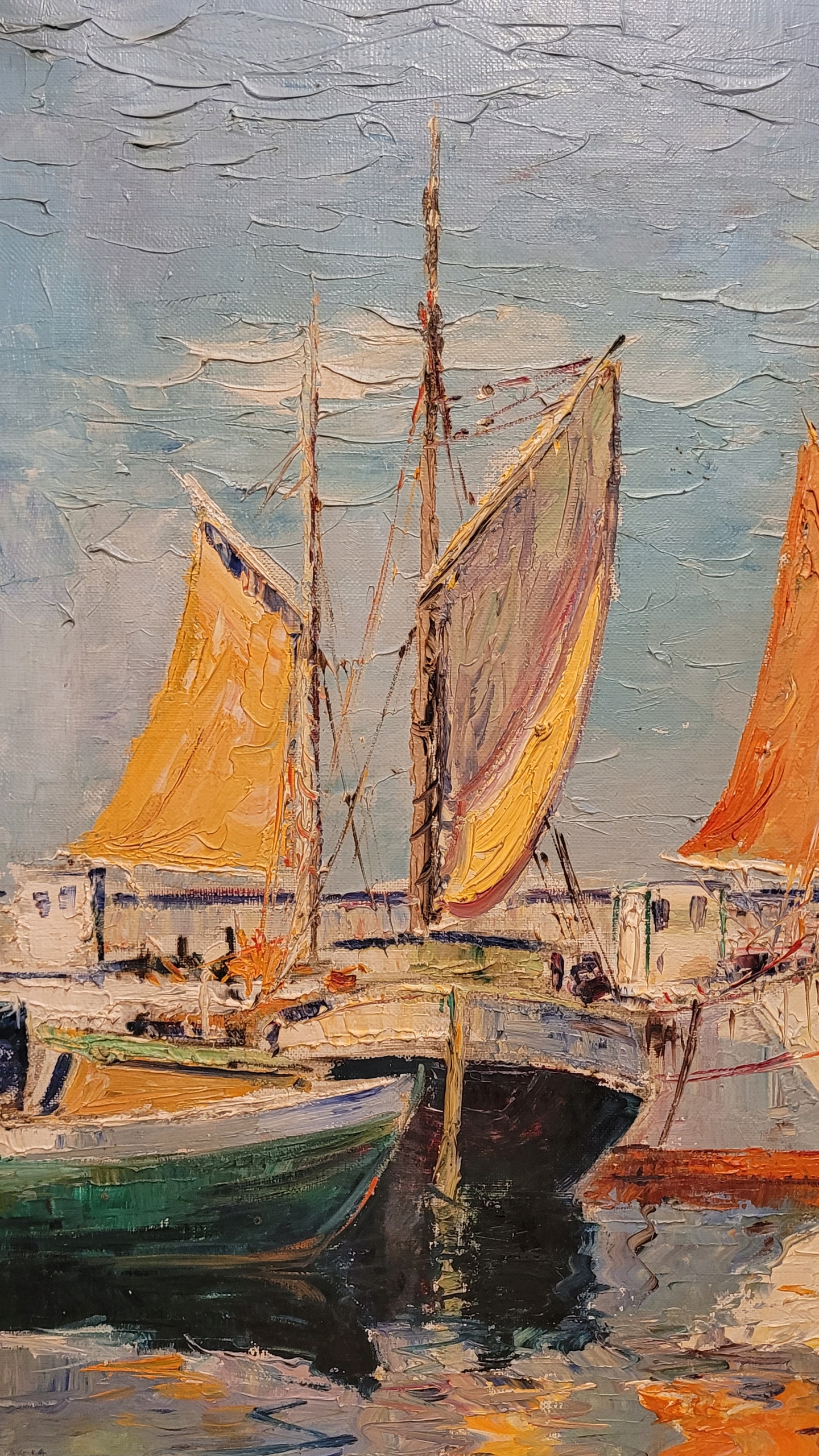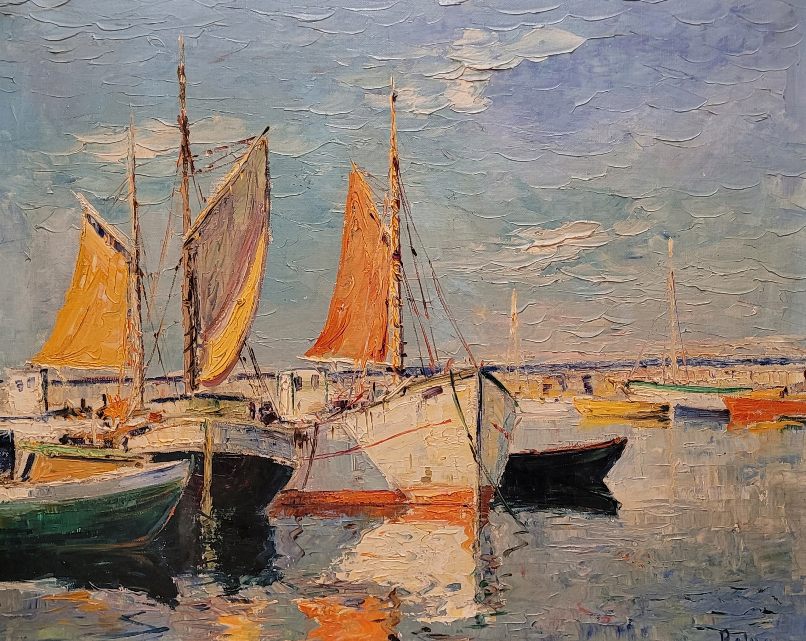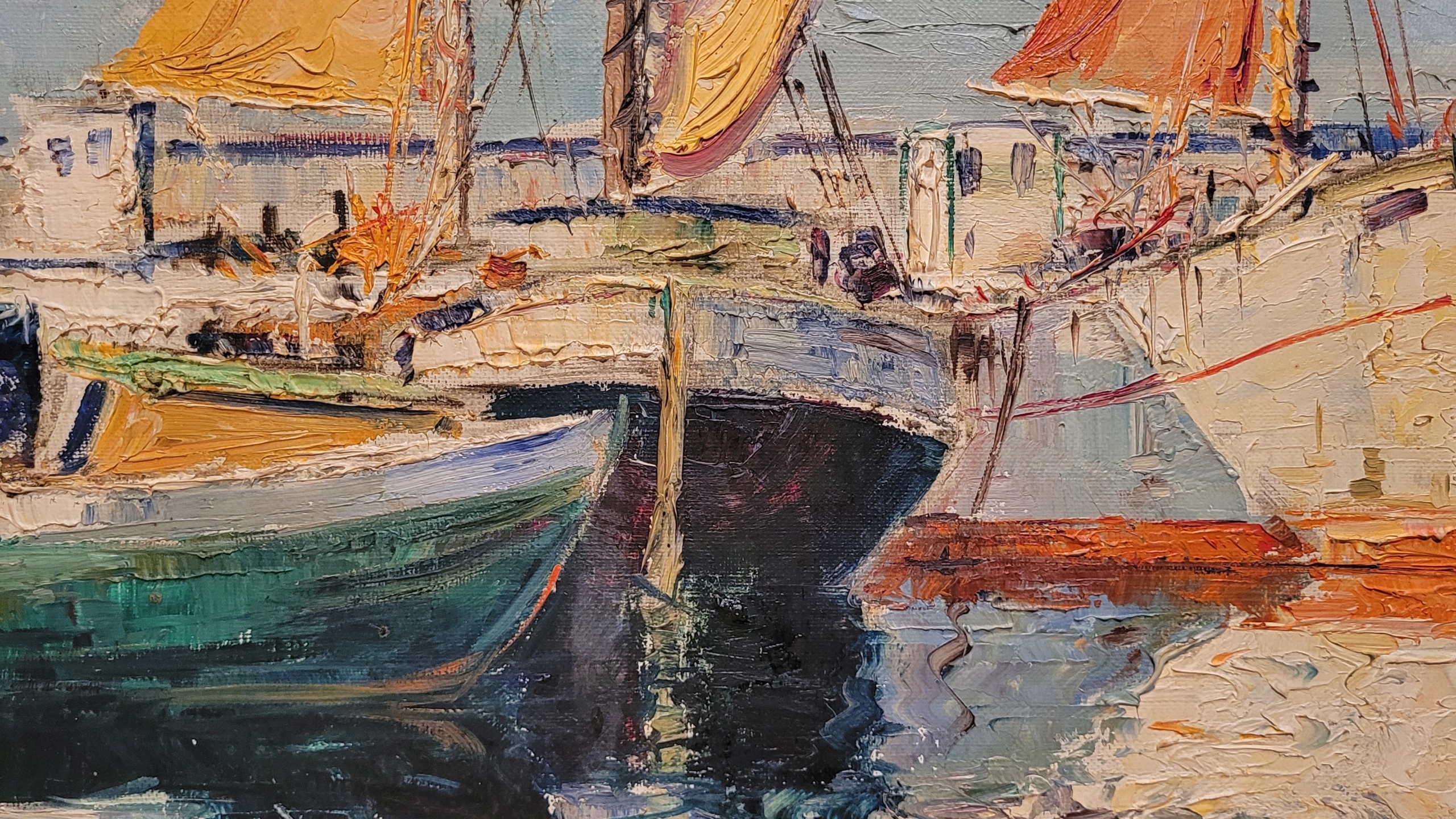 «РАЗРЕЗЫ В ПОРТУ», красивая подписанная картина маслом.