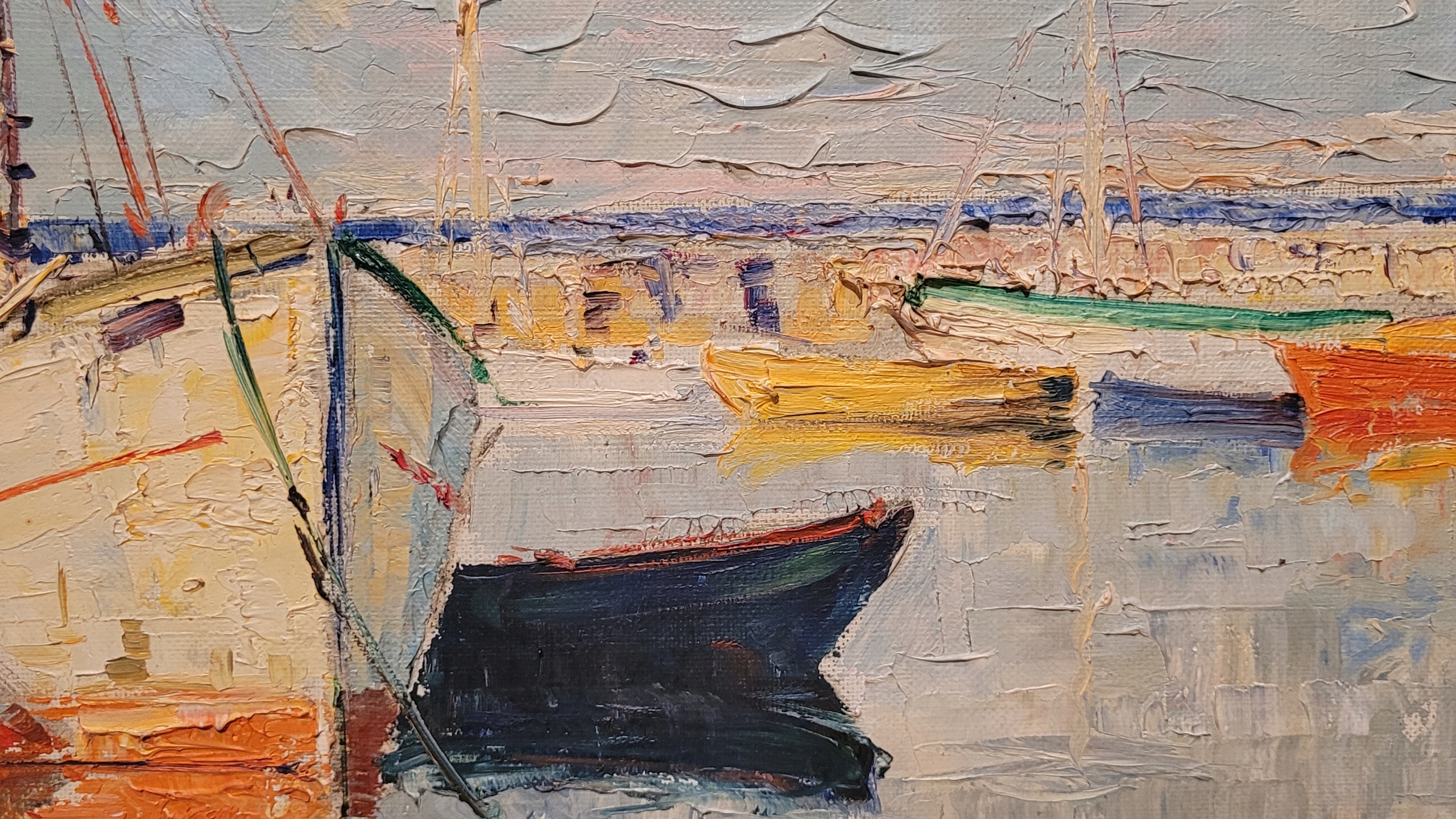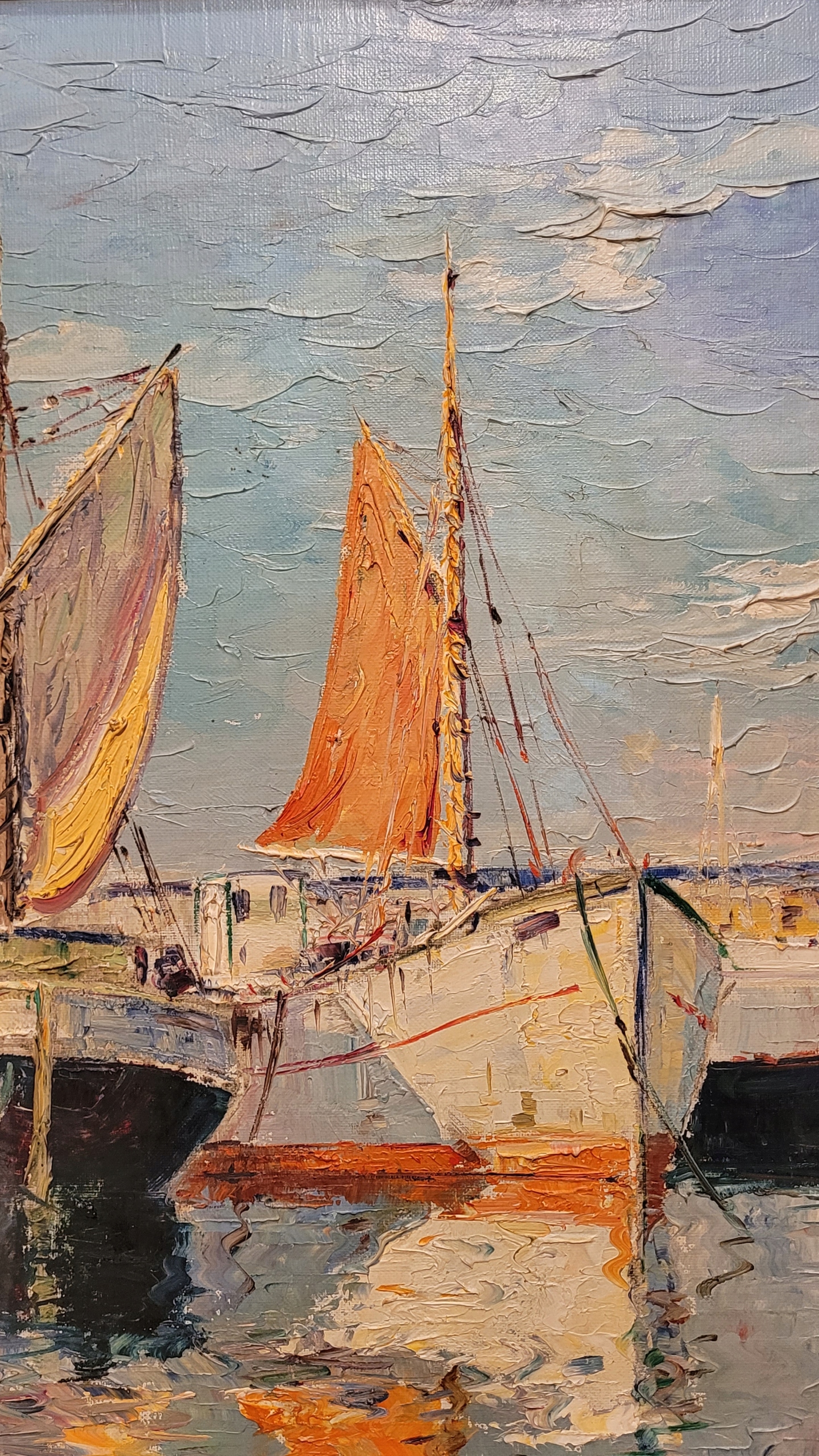 Предмет продажи - красивая, старинная картина маслом "КАТЕРА В ПОРТУ".
