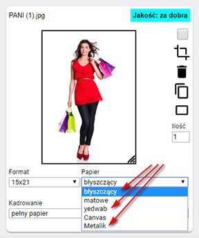 Выбрать градацию бумаги можно, развернув вкладку «Бумага» и выбрав наиболее подходящую. Варианты: ГЛЯНЦЕВЫЙ, МАТОВЫЙ