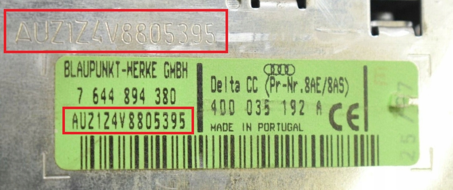 Серийный номер радиоприемника начинается с букв VWZ..., AUZ... , строка из 14 символов, расположена на корпусе радиоприемника, снимите радиоприемник и прочтите его по наклейке или гравировке на корпусе радиоприемника: