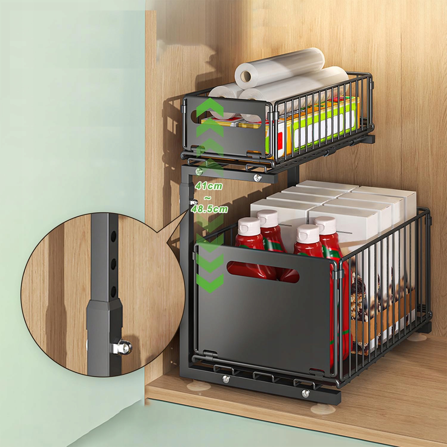 🪄 Особенности 🪜 h2> Выдвижной кухонный полка в шкафу двух -уровне -органайзер, регулируемый черный h2>