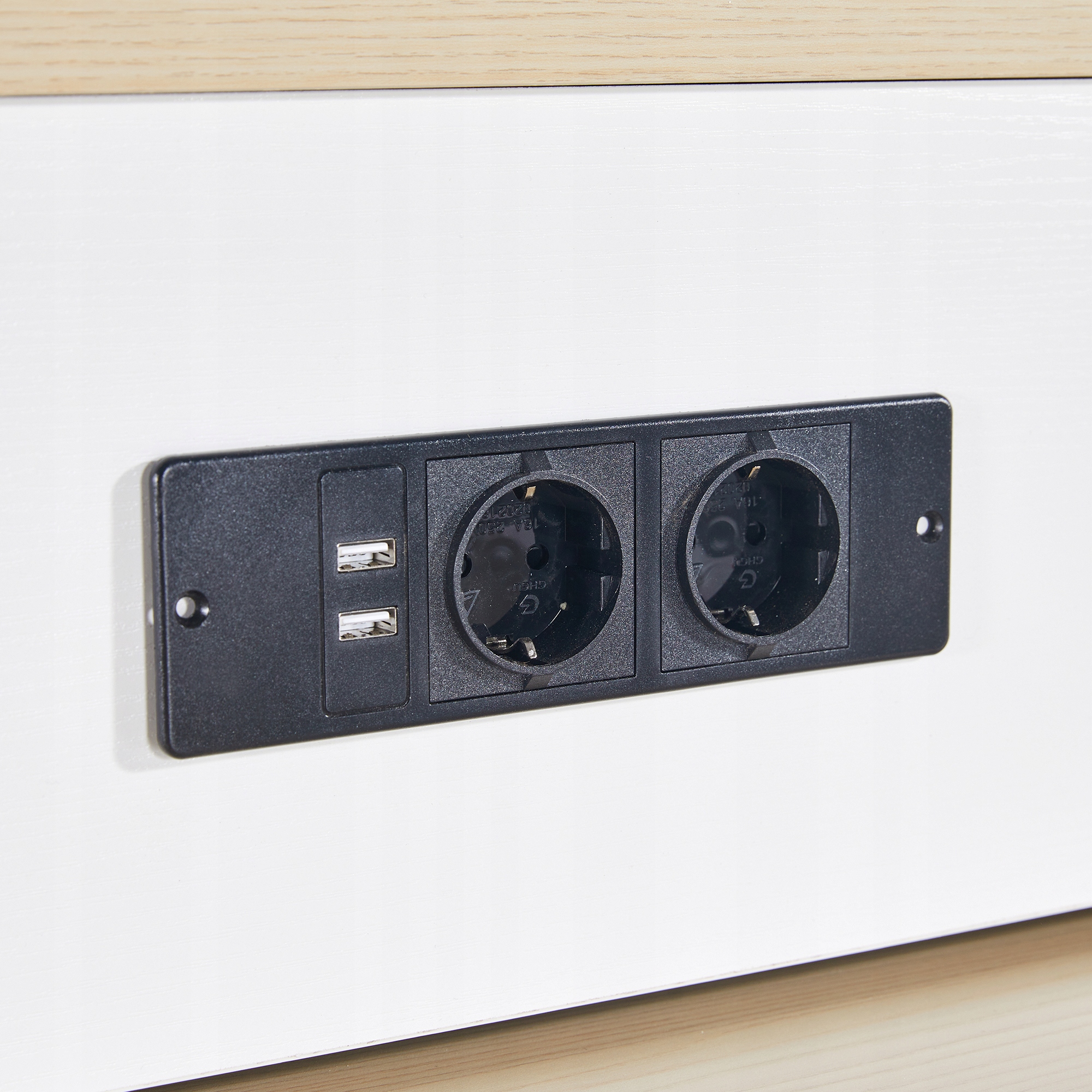 - Построенный в гнездо и USB -порт: верхняя часть столовой оснащена гнездом AC 250 В/16А и портом USB 5V/2.1A, которые подходят для зарядки и использования электронных устройств.