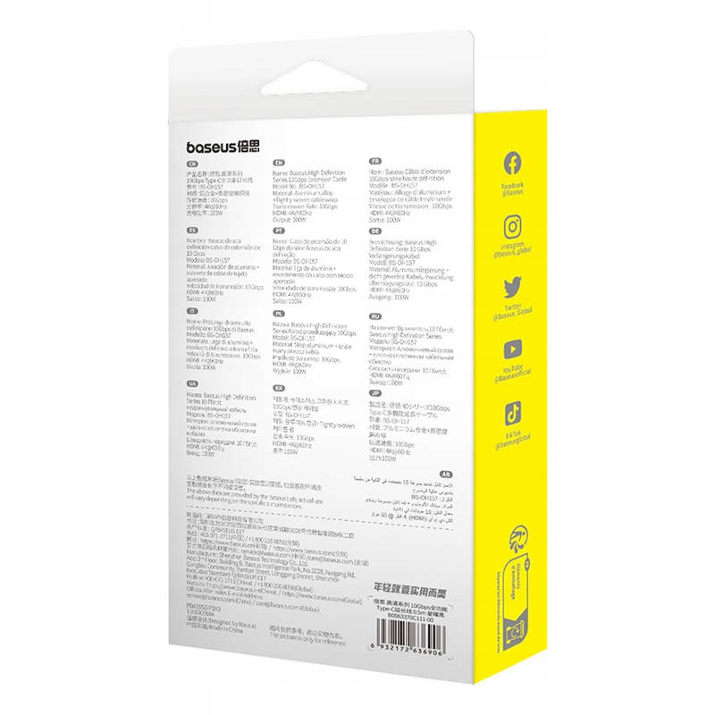 Удлинение кабеля Baseus не только обеспечивает надежность, но и впечатляющую скорость и качество передачи. Передача данных при 10 Гбит / с значительно улучшает работу и передачу файлов. Более того, он поддерживает разрешение в 4K@60 Гц, что гарантирует кристально чистое и жидкое изображение. Широкая совместимость с различными устройствами, такими как планшеты, внешние диски, концентраторы, ноутбуки или телефоны, делает его универсальным решением для различных потребностей.