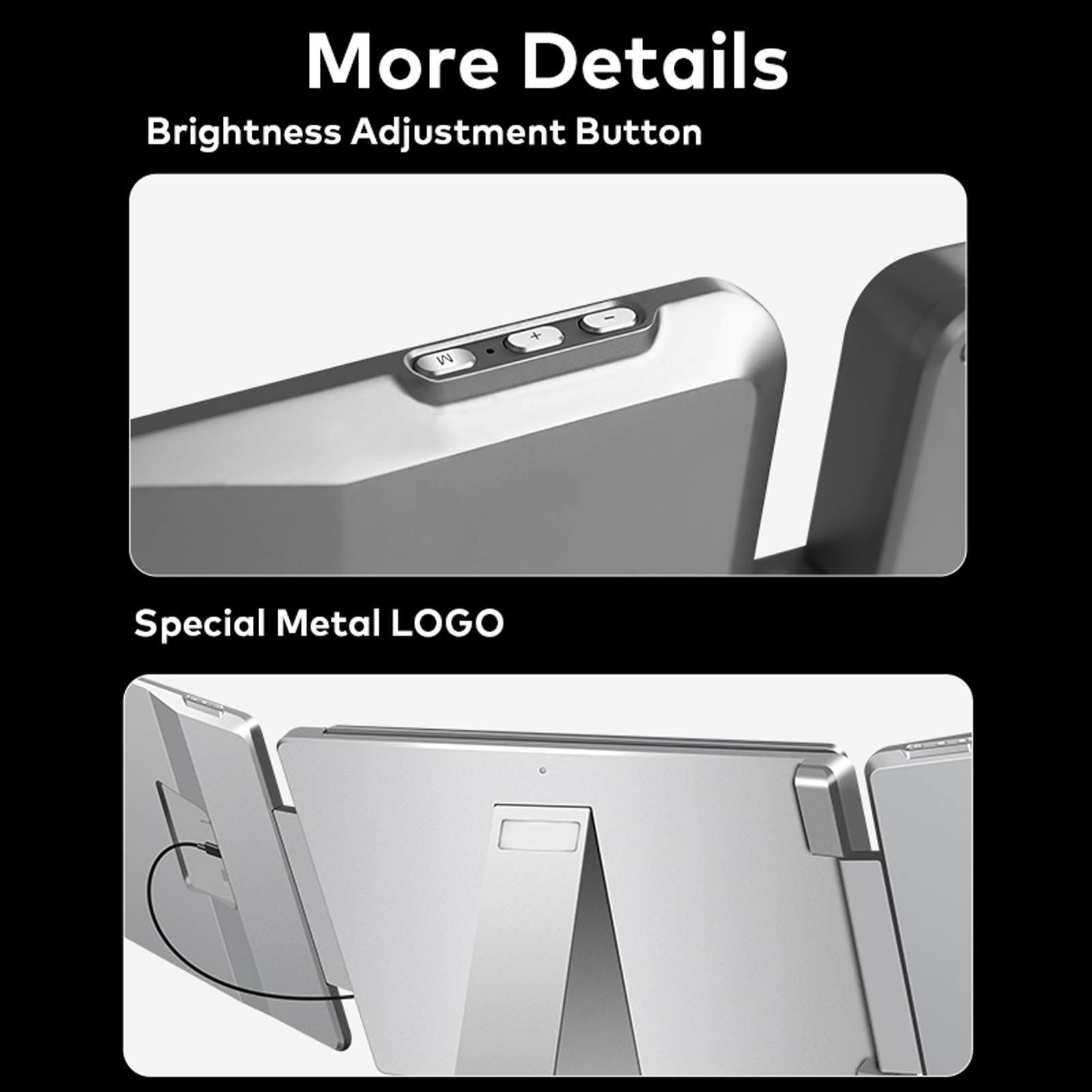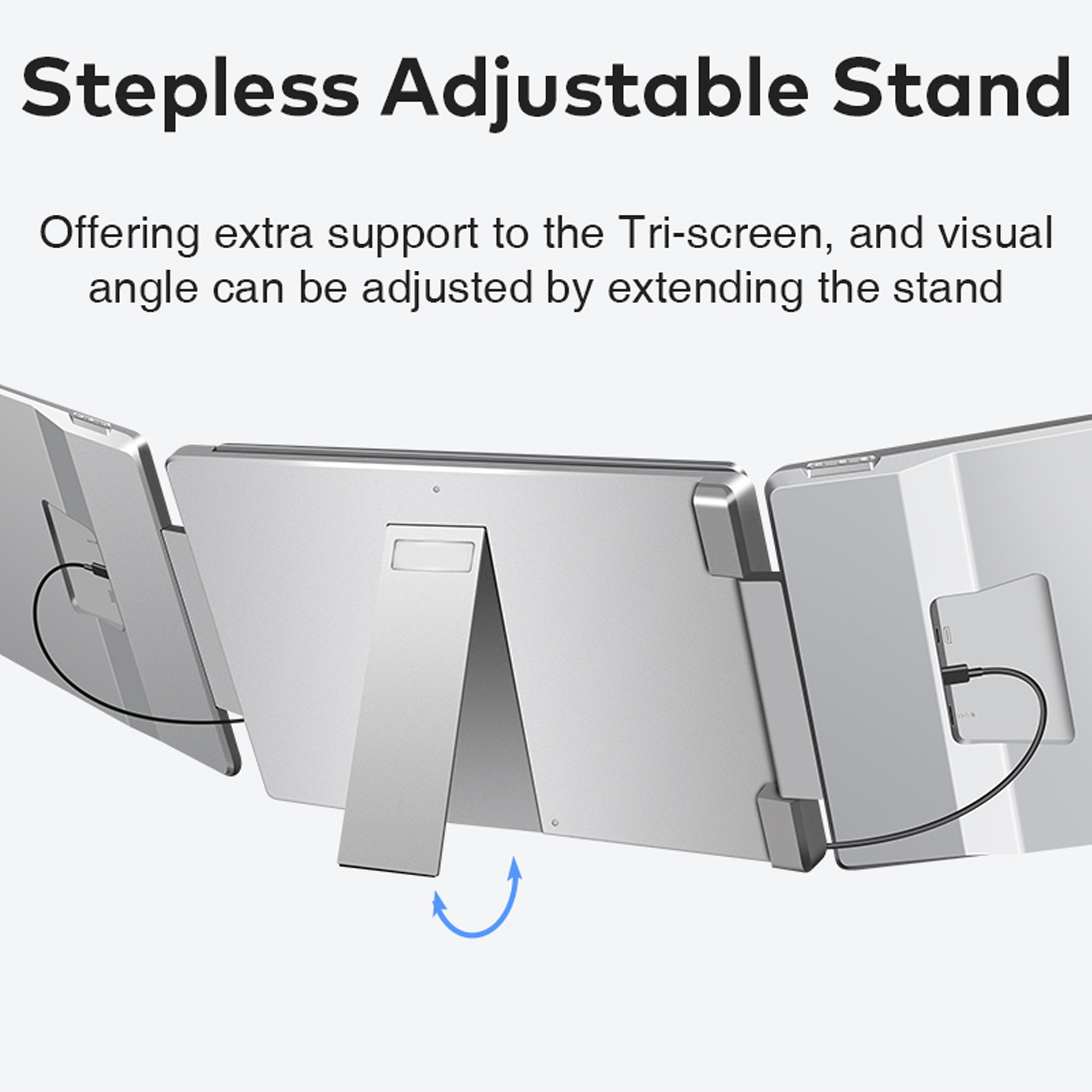 4. Стабильная конструкция стойки: Портативный экран имеет заднюю панель со встроенной основой, поэтому он может оставаться стабильным на столе под разными углами наклона без необходимости в магнитах или других аксессуарах.