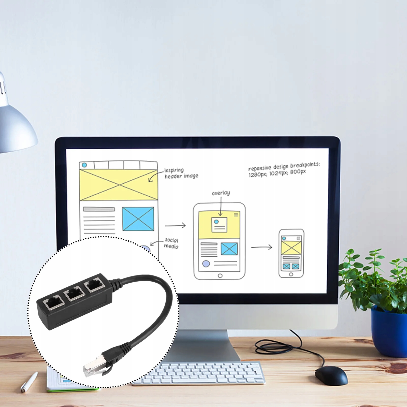 Вы запускаете один кабель Ethernet от стены до филиала, один от ветви до одного компьютера (или ноутбука) и один от ветви до другого компьютера (или ноутбука).