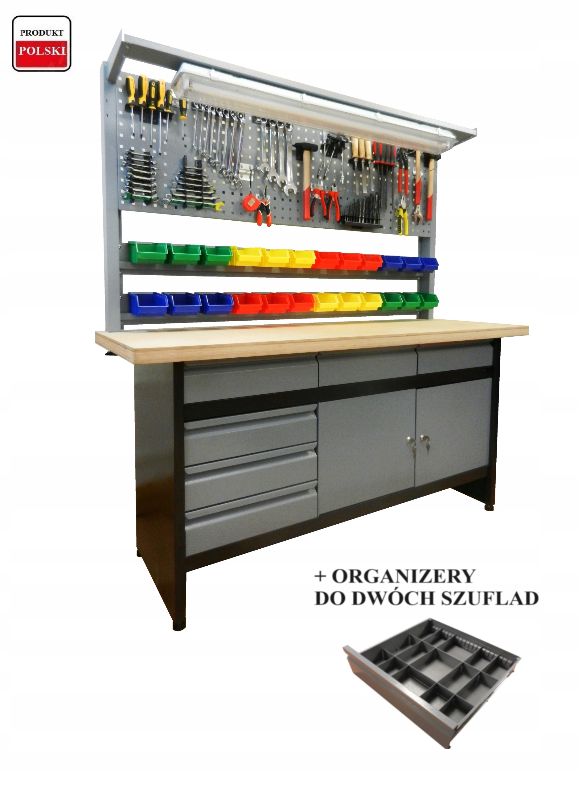 - оснащен перфорированной стенкой (квадратная перфорация) и двумя кронштейнами для подвешивания контейнеров для мелких предметов, каждый кронштейн имеет 12 прорезей для контейнеров,