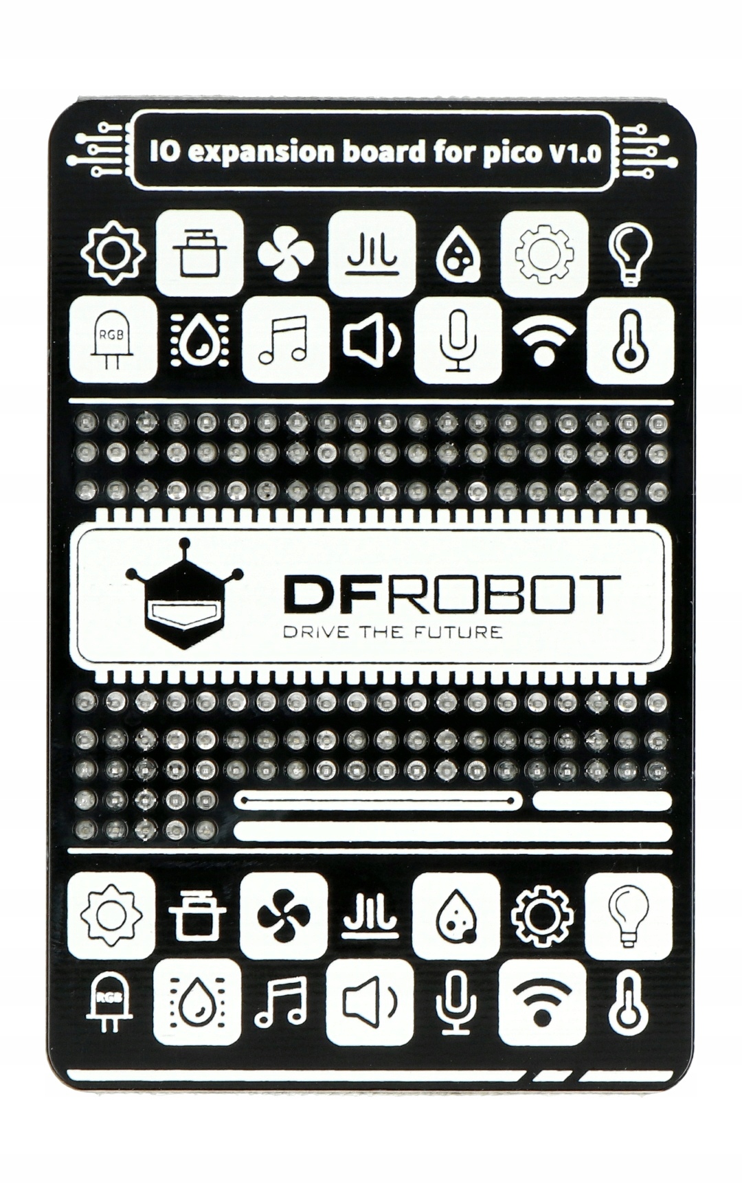 Расширитель контактов, созданный до появления DFRobot для Raspberry Pi Pico. Плата выводит все контакты ввода/вывода (IO) модуля Pico на штыревые и гнездовые контакты. Кроме того, все выводы подробно описаны, что значительно облегчает поиск нужного вывода во время прототипирования. Плата не требует пайки.