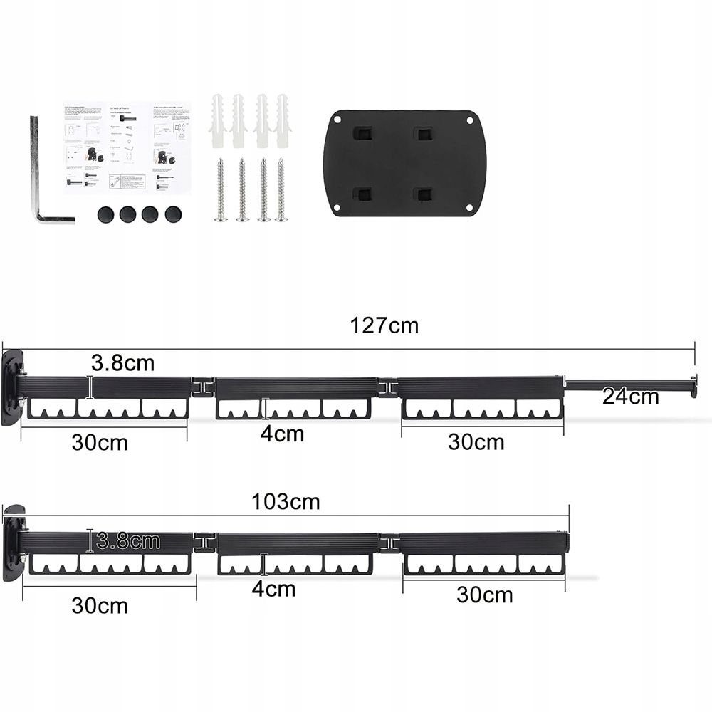 РАСШИРЯЕМАЯ НАСТЕННАЯ СУШИЛКА, СКЛАДНАЯ, ЭКОНОМЯЩАЯ ПРОСТРАНСТВО, ЧЕРНАЯ