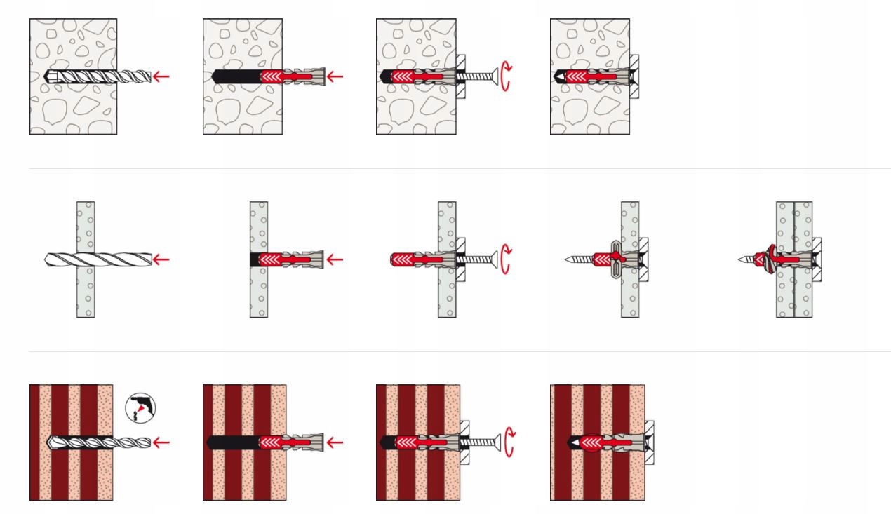 Увеличенная длина анкера (в случае DUOPOWER 6x50, 8x65 и 10x80) означает, что такая дюбель особенно подходит для монтажа в пустотелый кирпич, газобетон и оштукатуренные стены.