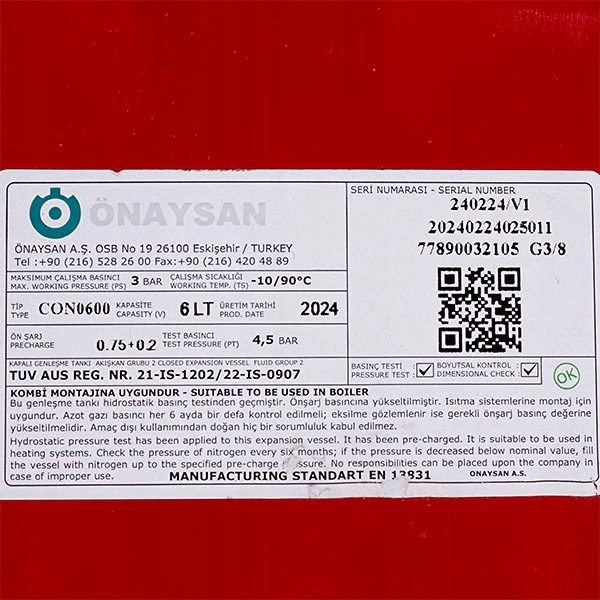 Расширительный бак Önaysan 7831308 используется в системе отопления газового котла Viessmann для компенсации изменений объема воды, вызванных перепадами температуры.
