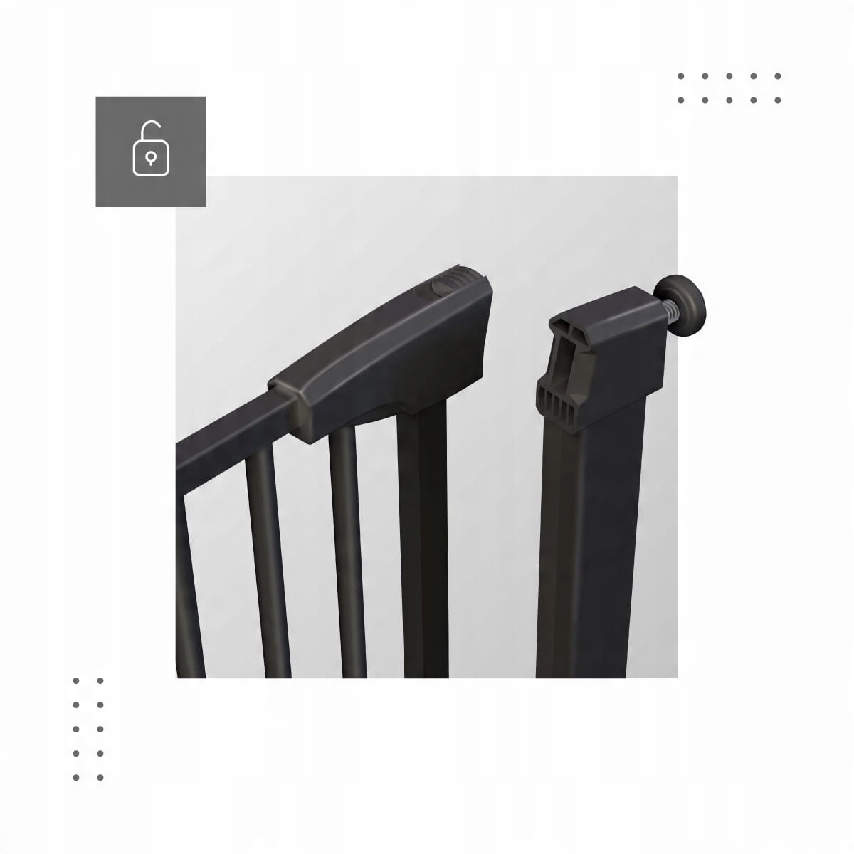 Mark Adler Guardian 3.0 предлагает широкие возможности регулировки ширины: от 75 до 110 см. Установка проста и беспроблемна, без необходимости сверлить отверстия в стене. Для повышения универсальности барьера в комплект входят два удлинителя по 14 см каждый.