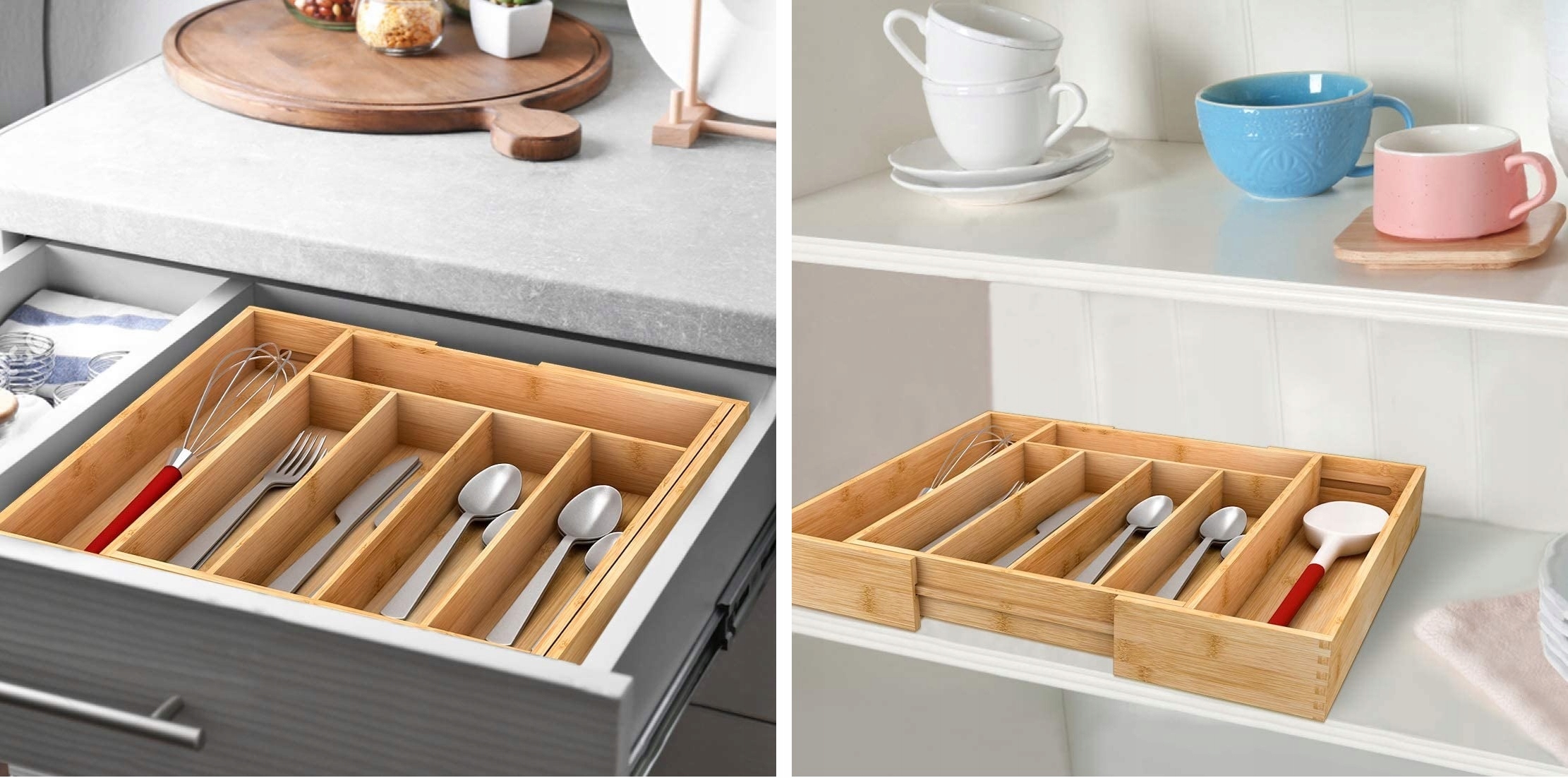 РОЗШИРЮВАЛЬНИЙ ОРГАНІЗАТОР ДЛЯ СТОЛОВИХ ПРИБОРІВ БАМБУКОВА ВСТАВКА ДЛЯ КУХОННОЇ ЯЩИКИ XXL