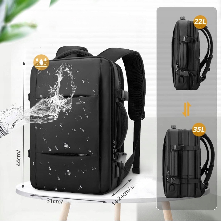 Размер и возможность расширения: максимальный размер мужского рюкзака — 40 x 31 x 25 см. Мужской деловой рюкзак можно расширить с помощью молнии на 360 градусов, что увеличивает вместимость с 22 до 35 литров.