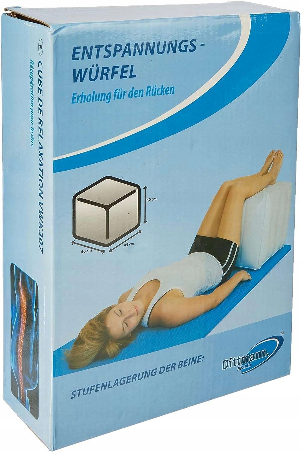 - Надуваемый Medicalpax/Dittmann Cube помогает снять проблемы с помощью позвоночника и межпозвоночного диска. .. Постановка обеспечивает оптимальное облегчение позвоночника li> Это может быть раздут обычные насосы. Из -за различной длины краев (около 40x45x50см) он подходит практически для любого размера тела, переворачивая его, а также может быть индивидуально адаптирован к длине бедра. Многие врачи для повседневного использования и в случае острых заболеваний это вызывает четко ощущение облегчения позвоночника примерно через 10-20 минут. Регулярное использование медицинских кубиков способствует регенерации межпозвоночных дисков. Кроме того, облегчение получается в случае варикозного отек и лимфатического отек, мышечного тонуса, расстройств кровообращения, отдыха и расслабления от повседневного стресса