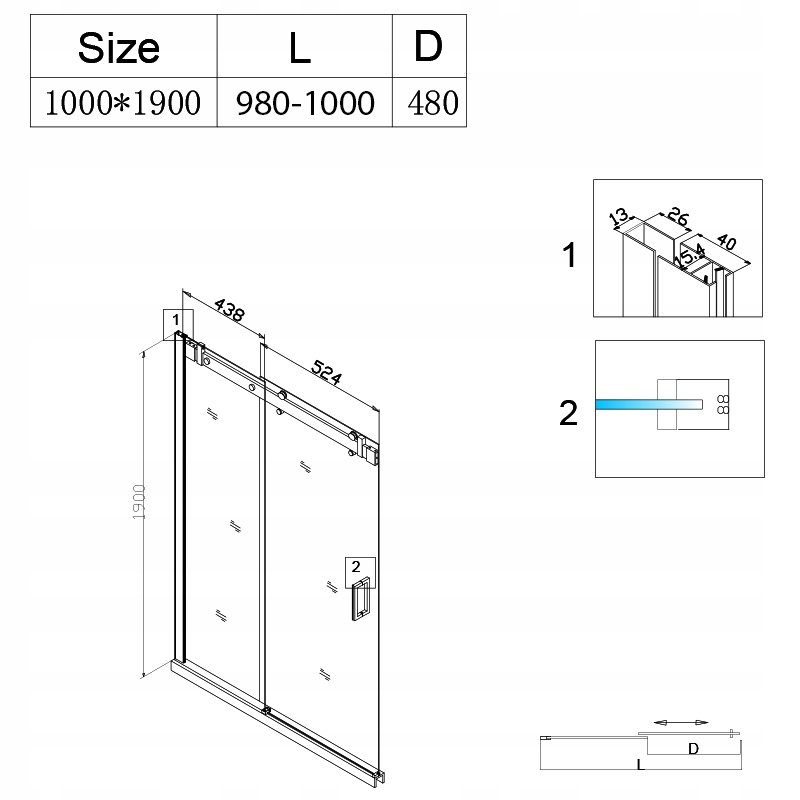 Возможность регулировки длины душевой двери до еще меньших размеров на 50 мм! Укорачивать верхний профиль следует самостоятельно ТОЛЬКО И ТОЛЬКО со стороны двери (рейка, по которой бегут ролики, подрезая ее на любую длину).< /п>