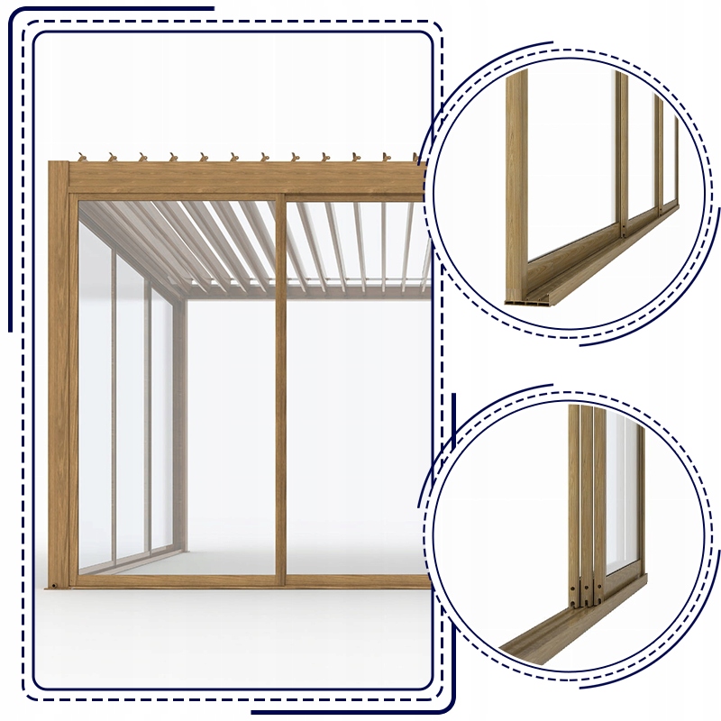 - Стеклянные раздвижные двери позволяют построить садовую перголу класса люкс в соответствии с вашими потребностями
