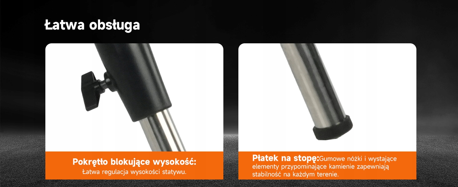 Уникальная двухступенчатая телескопическая функция и резиновые ножки повышают устойчивость и позволяют легко переносить их на различных типах поверхности.