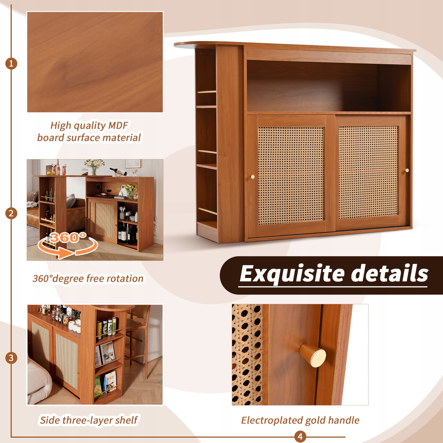 Раздвижной барный стол, кухонный остров из ротанга 138-193×39×104см