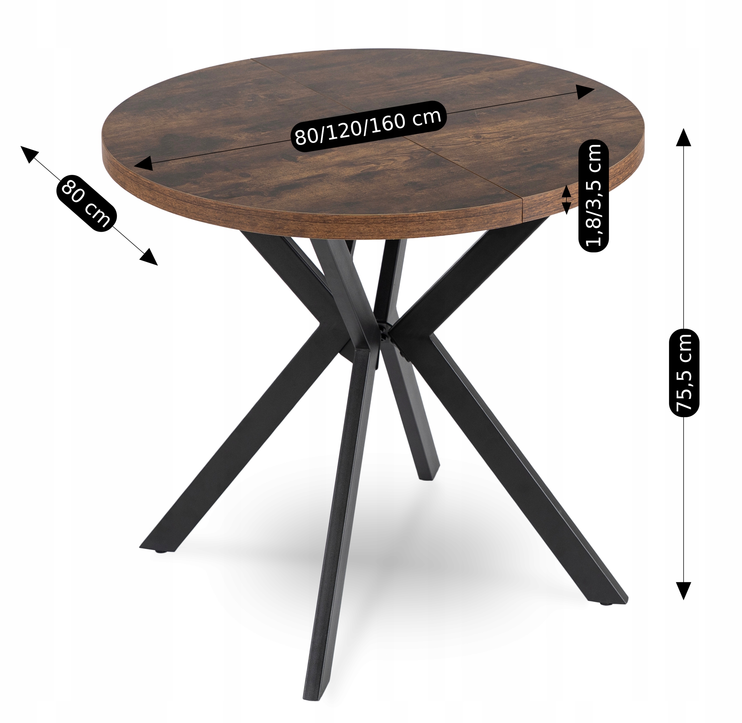 Раздвижной круглый стол 80 для гостиной Дуб Рустик Черный Лофт DORIAN ⭐⭐⭐⭐⭐