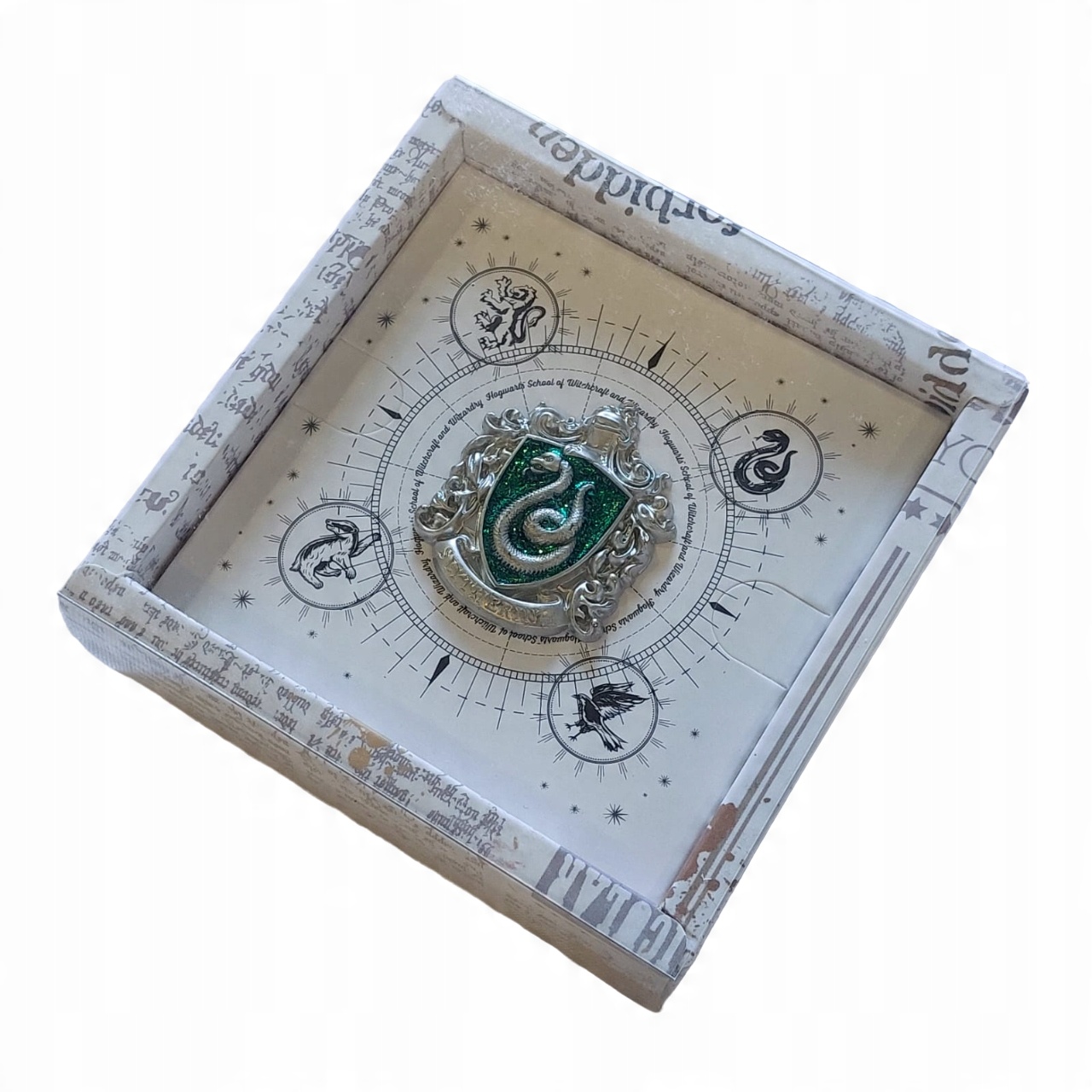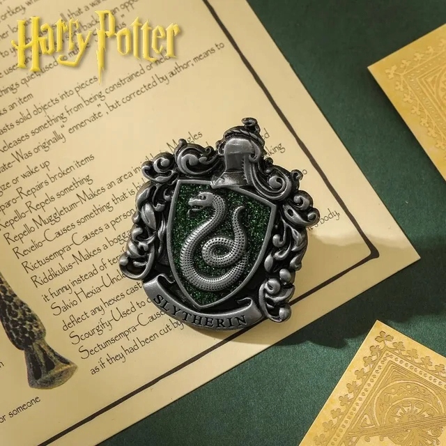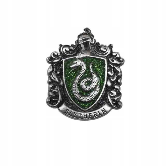 Значок с гербом Слизерина — элегантный акцент для амбициозных и умные поклонники волшебного мира. Герб в зеленых и серебряных тонах представляет собой змею, символ хитрости и решительности. Цельнометаллическая булавка идеально подходит для украшения одежды или аксессуаров, подчеркивая вашу принадлежность к факультету Слизерина.