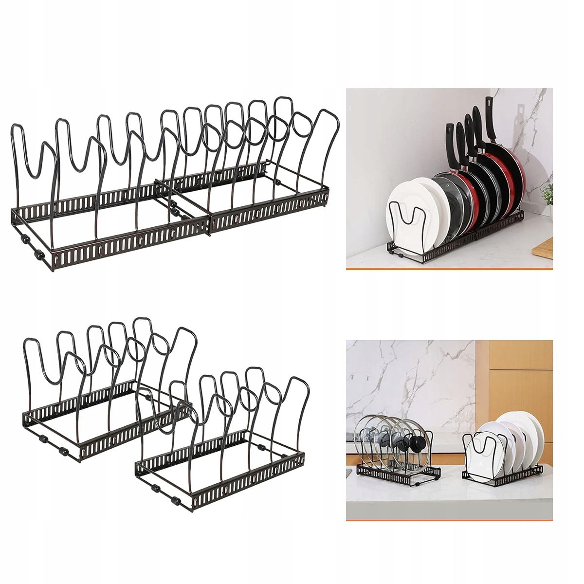⭐️Регулируемый держатель для кастрюли, крышка, контейнер для кастрюли с 10 отделениями, металлический держатель кухонной крышки, органайзер для кастрюль (черный)⭐️