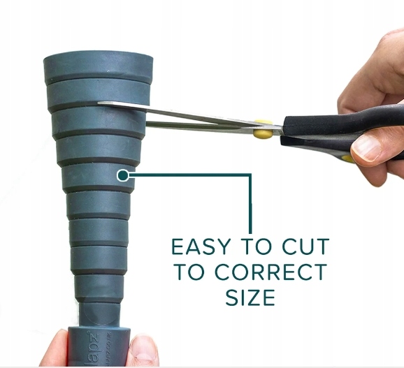 Воронка изготовлена из мягкой резины, ее можно легко разрезать до необходимого размера, если это необходимо