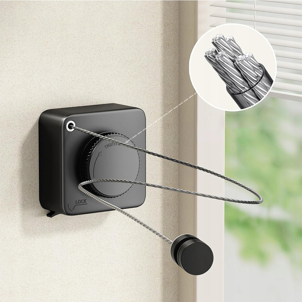 ✅ оснащен механизмом блокировки и механизмом вращающегося натяжения, вы можете повернуть натяжную струну, чтобы заблокировать ее при висящем много одежды, в результате чего она висит. (около 18 кг).