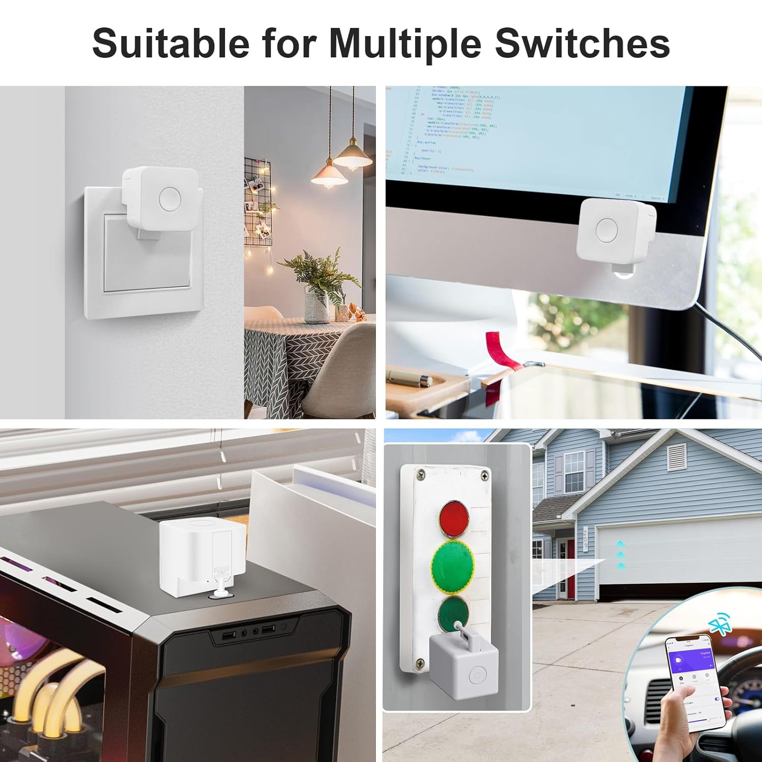 - Universal - хорошо работает практически с каждым переключателем рычага и кнопкой на устройствах и преобразует традиционные переключатели и кнопки в интеллектуальные кнопки, используя кнопку робота. Интеллектуальное нажатие кнопки Bluetooth в ваш интеллектуальный дом. С помощью этой интеллектуальной кнопки пальца вы можете включать и выключать компьютер, телевизор, молотые роботы, двери гаража, выключатели света и многие другие.