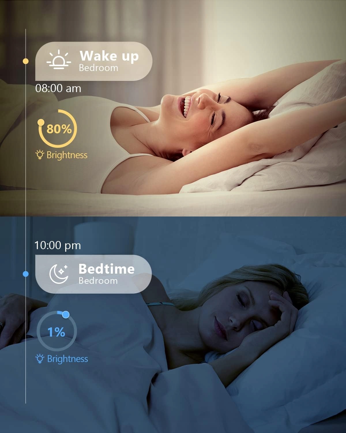Наша умная лампа использует светодиодную технологию и обеспечивает мощность 9 Вт, что эквивалентно обычной лампе. Лампа мощностью 60 Вт. Яркость можно регулировать от 1% до 100%.