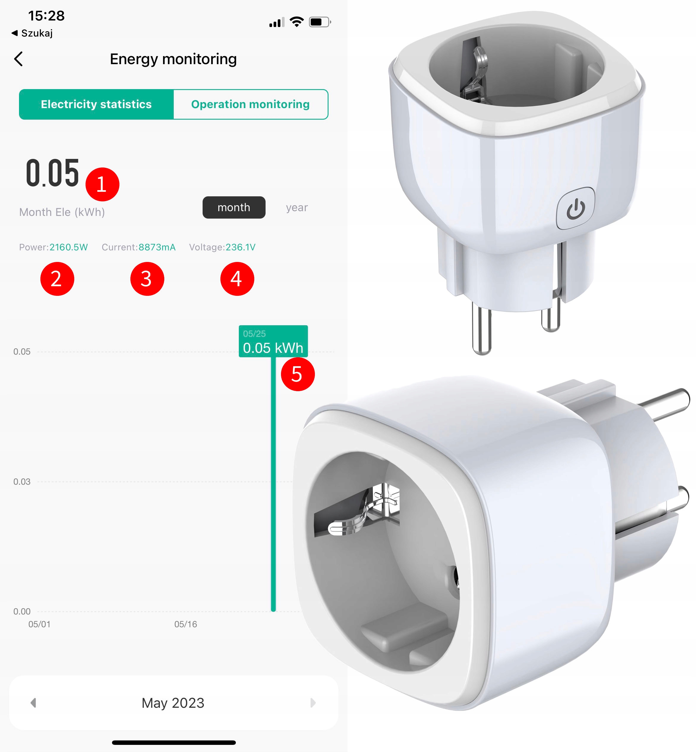 В приложении мы можем видеть потребление энергии в реальном времени, а также можем проверить историю потребления по календарю.