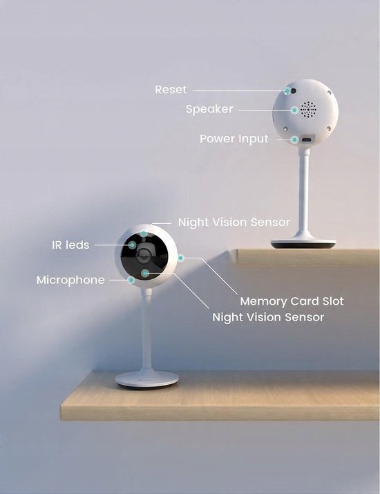 Дальность ночного видения интеллектуальной внутренней камеры составляет до 15 метров, что обеспечивает более четкое видео и фотографии в темноте. и защищает ваш дом 24 часа в сутки, 7 дней в неделю. Встроенный микрофон и противошумный динамик, где бы вы ни находились, вы сможете общаться со своим ребенком/пожилым человеком/питомцем в режиме реального времени через мобильное приложение.