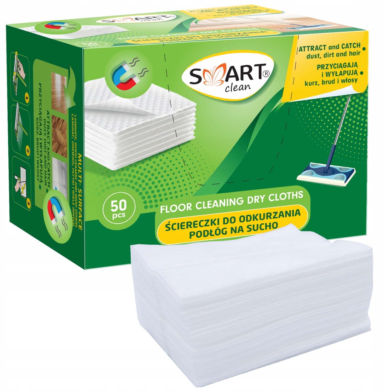 Сухие салфетки SMART clean Наполнитель для швабры 50 шт.