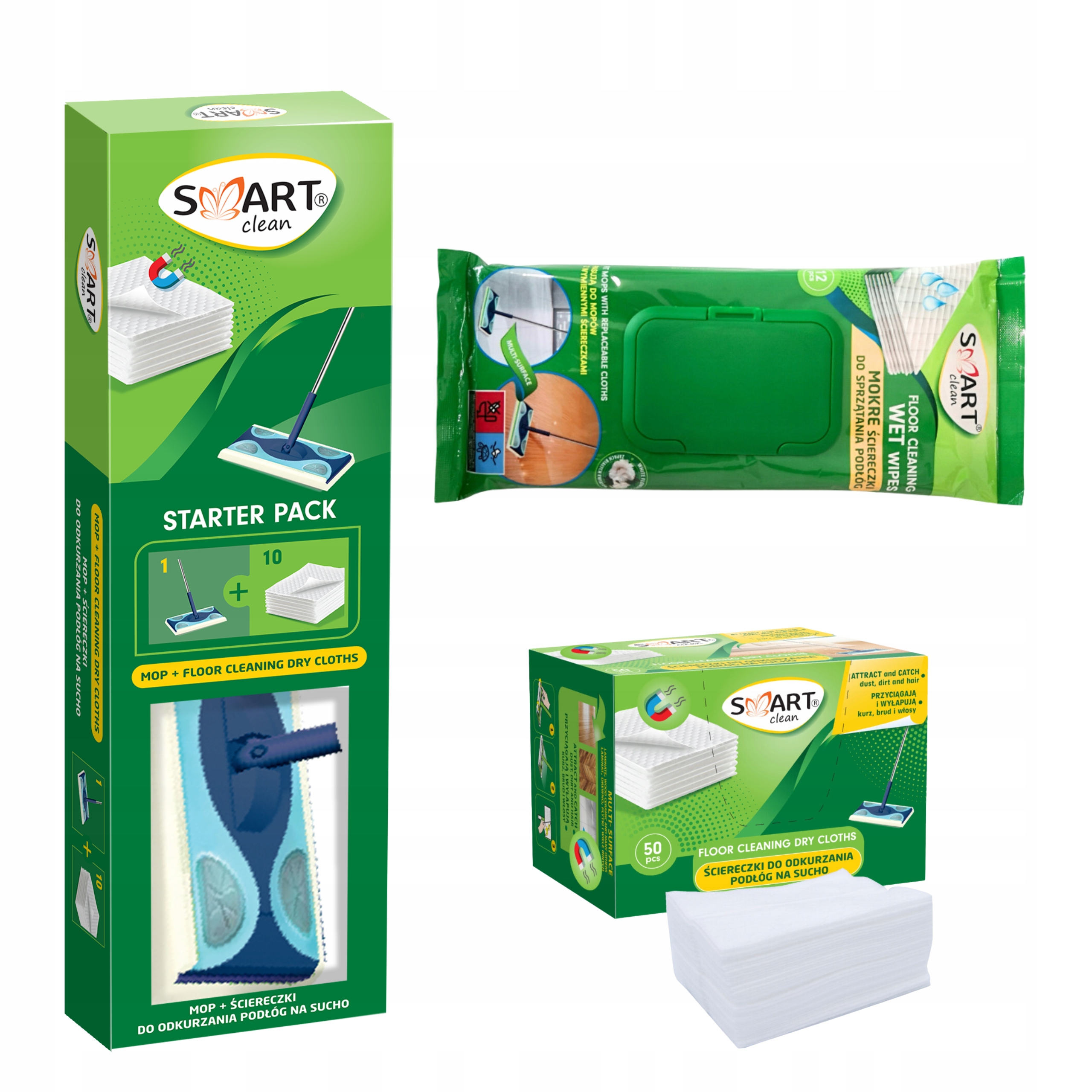ЗАМЕНА ШВАБРЫ SMART + ТКАНИ 10+50 ШТ СУХИЕ + 12 ШТ ВЛАЖНЫЕ ДЛЯ ПОЛА