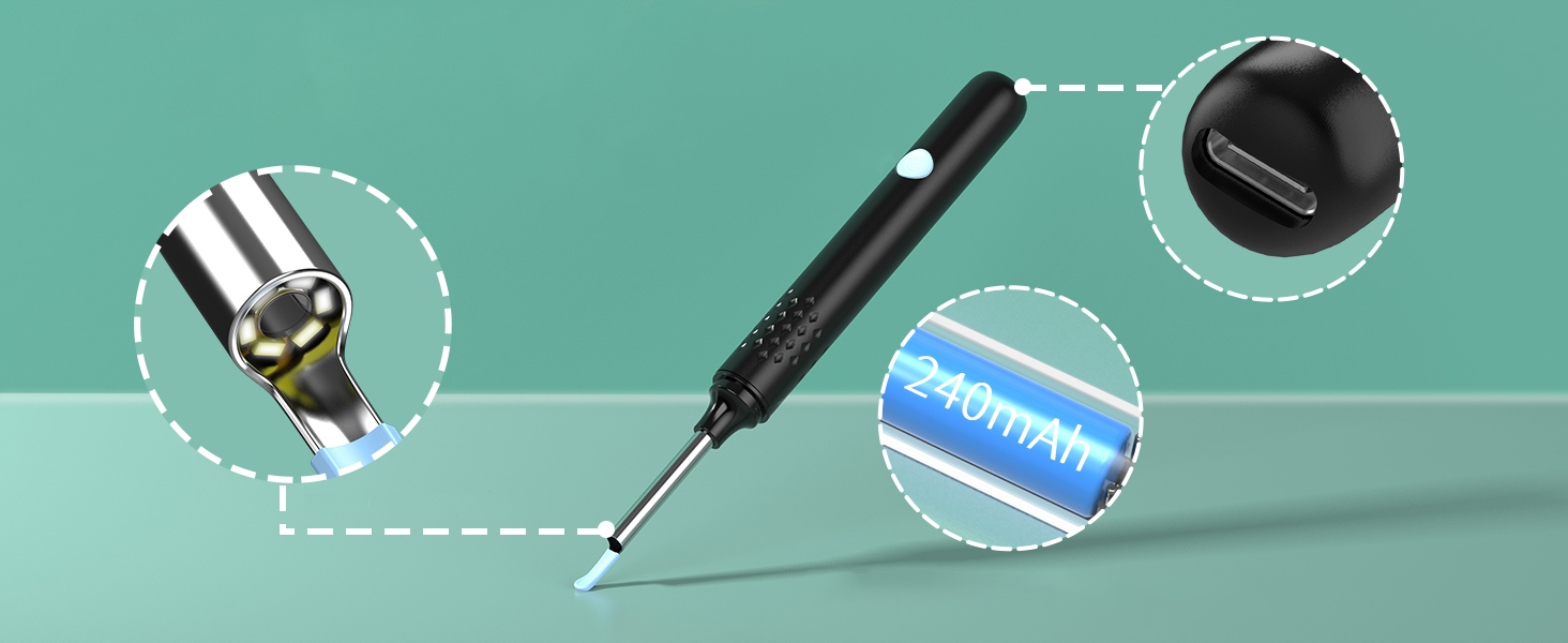 ⭐ использует гироскопическую ориентацию с 6 полями и 6 светодиодных фонарей , чтобы обеспечить 360-ступенчатое представление о слуховом канале и принять HD-фотографии и видео в режиме реального времени, чтобы помочь в безопасной и эффективной очистке ушей. Он контролирует температуру в области ушной пробки без раздражения глаз.