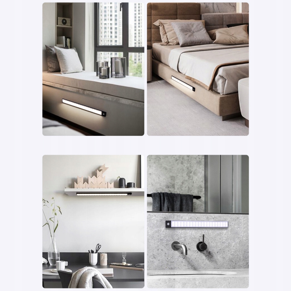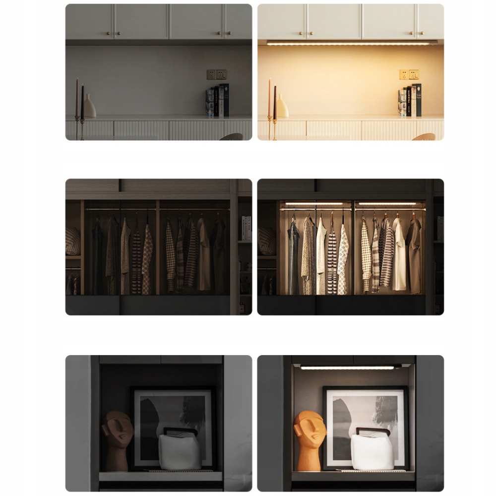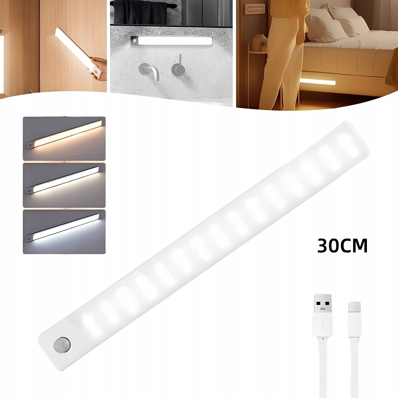 💡УЛЬТРАТОНКАЯ, ИНТЕЛЛЕКТУАЛЬНАЯ СВЕТОДИОДНАЯ ПОЛОСКА С ДАТЧИКОМ ДВИЖЕНИЯ, 30 СМ, ПЕРЕЗАРЯЖАЕМАЯ, МАГНИТНАЯ, САМОКЛЕЯЩАЯСЯ, ОСВЕЩЕНИЕ ГАРДЕРОБА, ВИННОГО ШКАФА/КУХОННОГО ШКАФА, ТРЕХЦВЕТНОЕ ОБЪЕМНОЕ СВЕТ