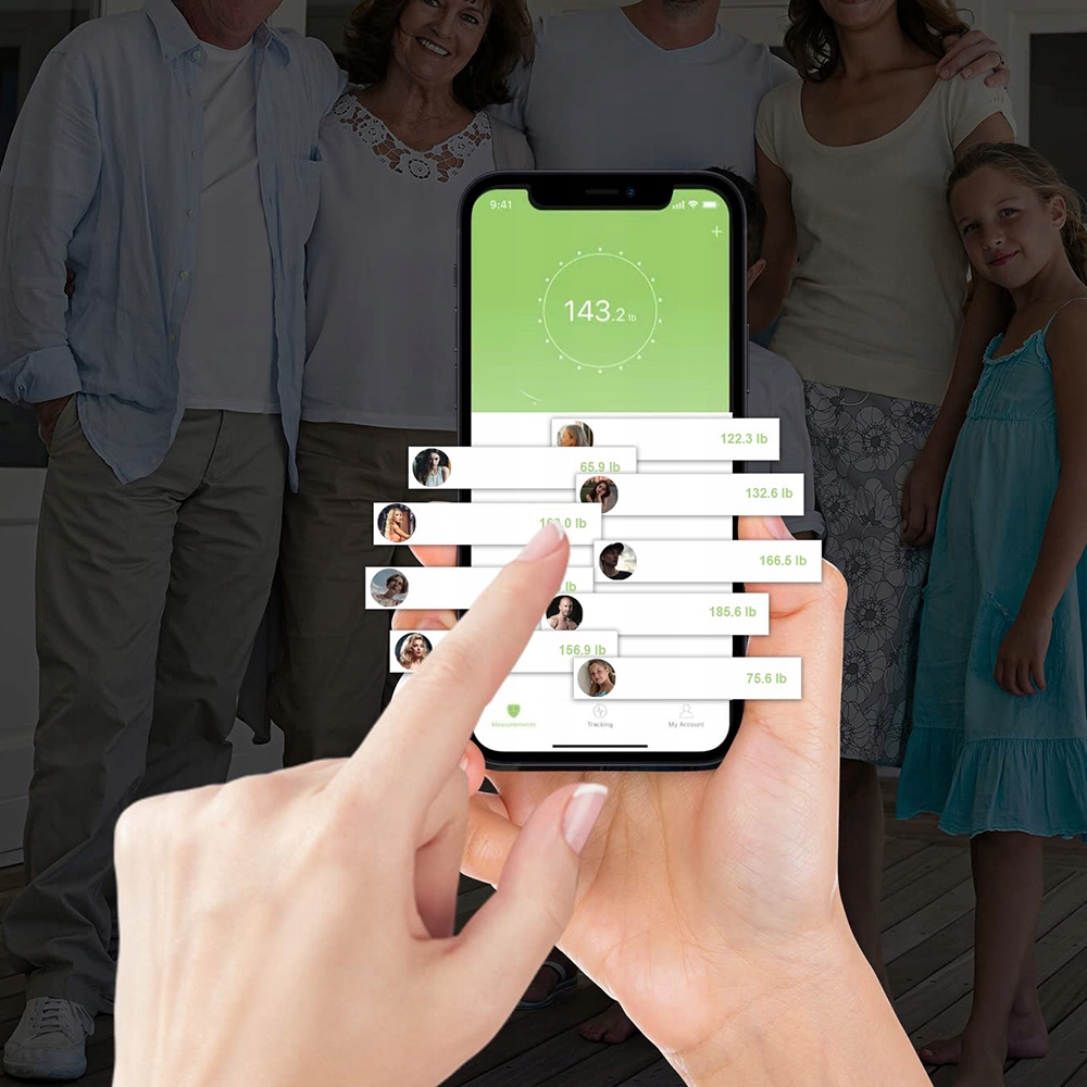 🌊- Имеет 19 ключевых показателей, включая вес, ИМТ, % жира в организме, % мышц, V-образный жир, костную массу, % воды, BMR, ожирение, % белка, мышечную массу тела, телосложение возраст и т. д.