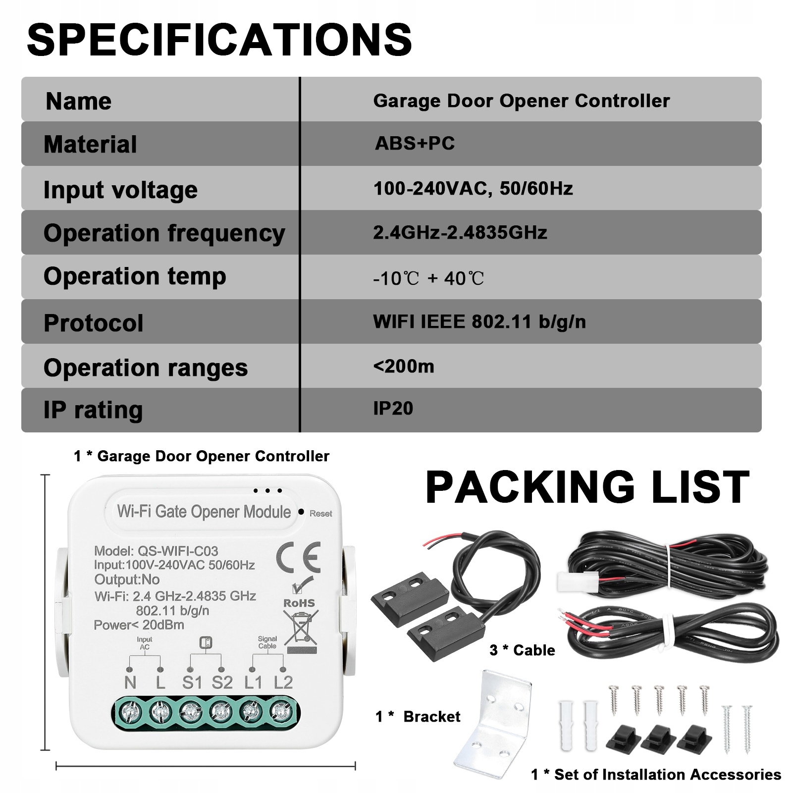 【Функция таймера расписания】: функция настройки времени с функцией таймера расписания для удовлетворения ваших индивидуальных потребностей. Вы можете открыть гараж удаленно, и функция обратного отсчета автоматически закроет дверь гаража, когда время истечет.