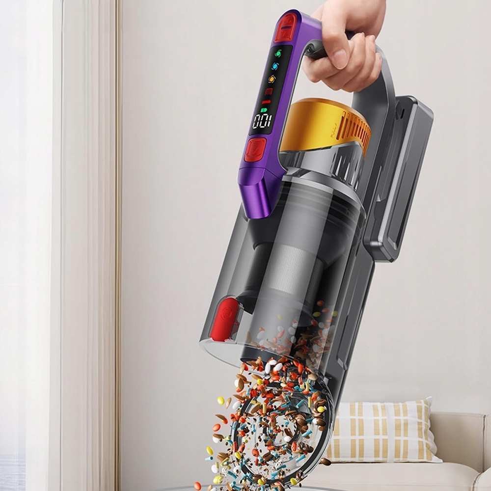- Этот беспроводной пылесос оснащен четким, легко читаемым ЖК-дисплеем, который показывает текущий уровень заряда батареи, 3 режима мощности и сигнал тревоги о засорении.