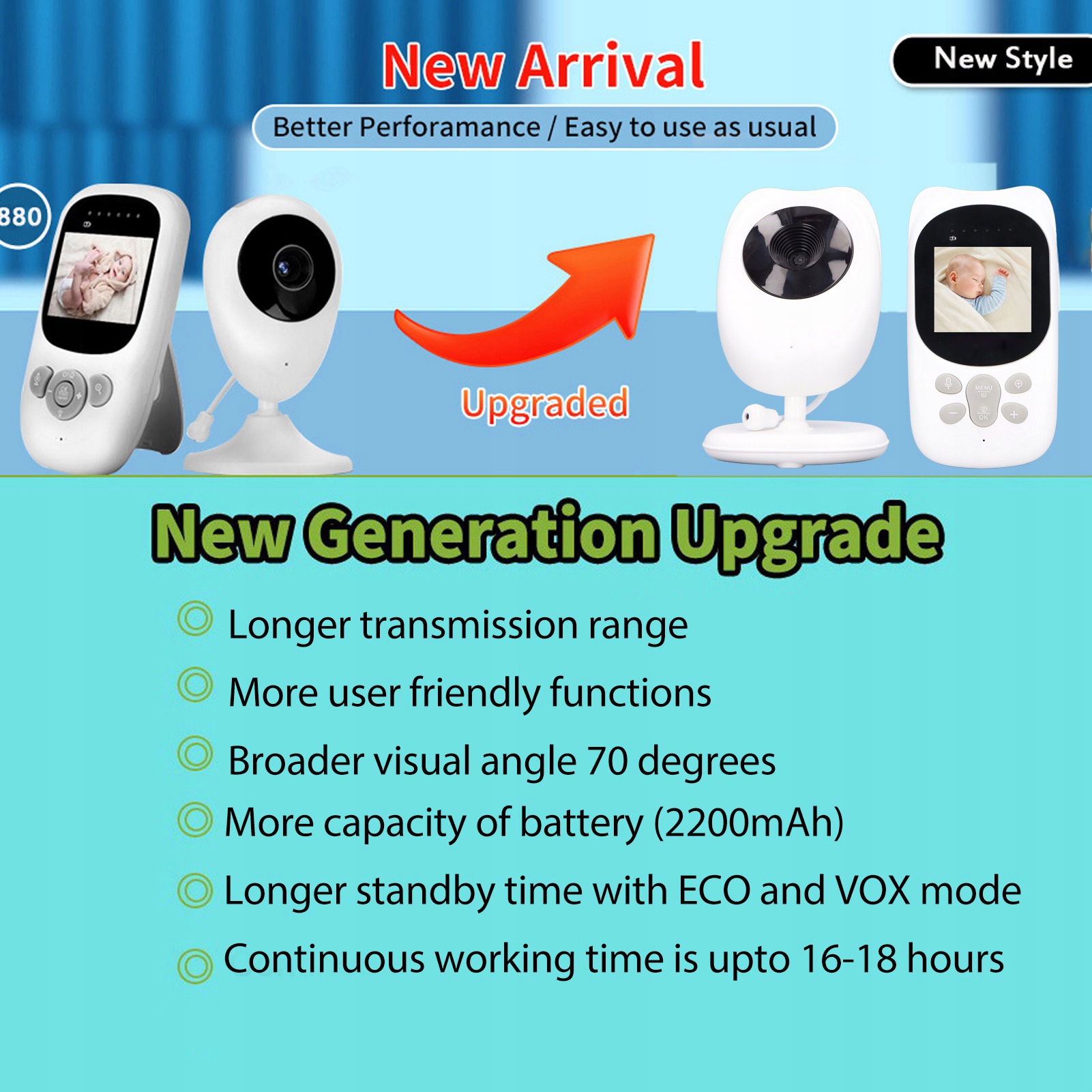 1. Долгосрочный мониторинг: оснащен большой литиевой емкостью, обеспечивающей надежную поддержку питания для длительного ухода за младенцами и более высокую безопасность.